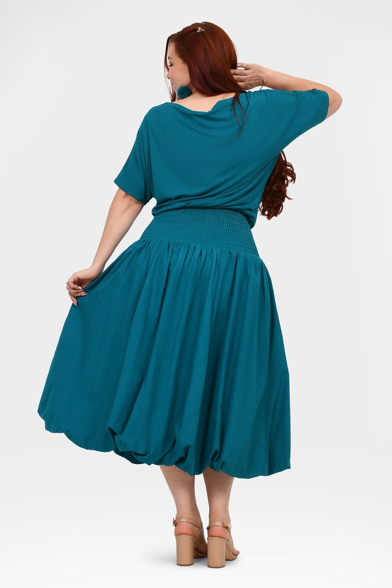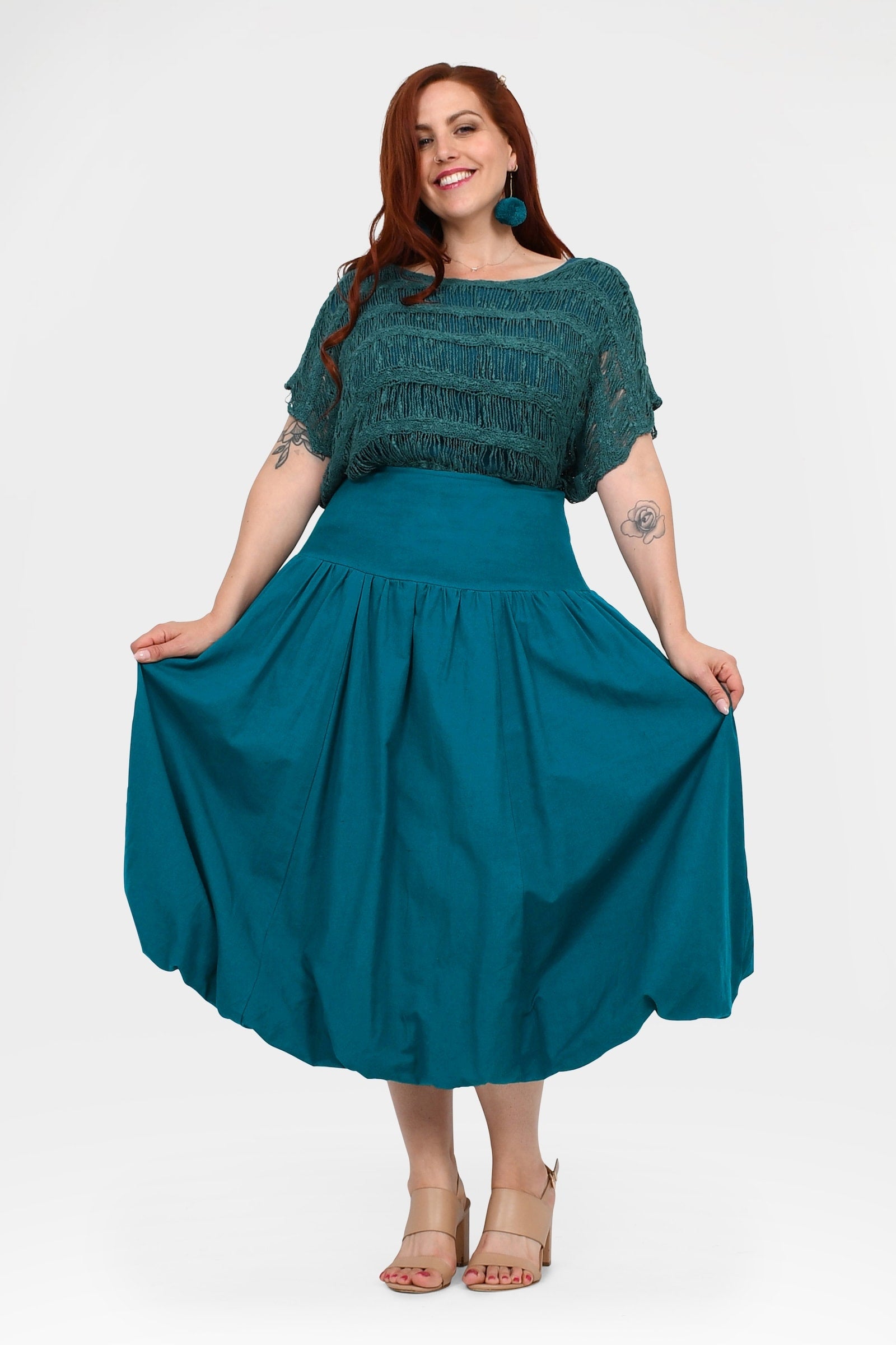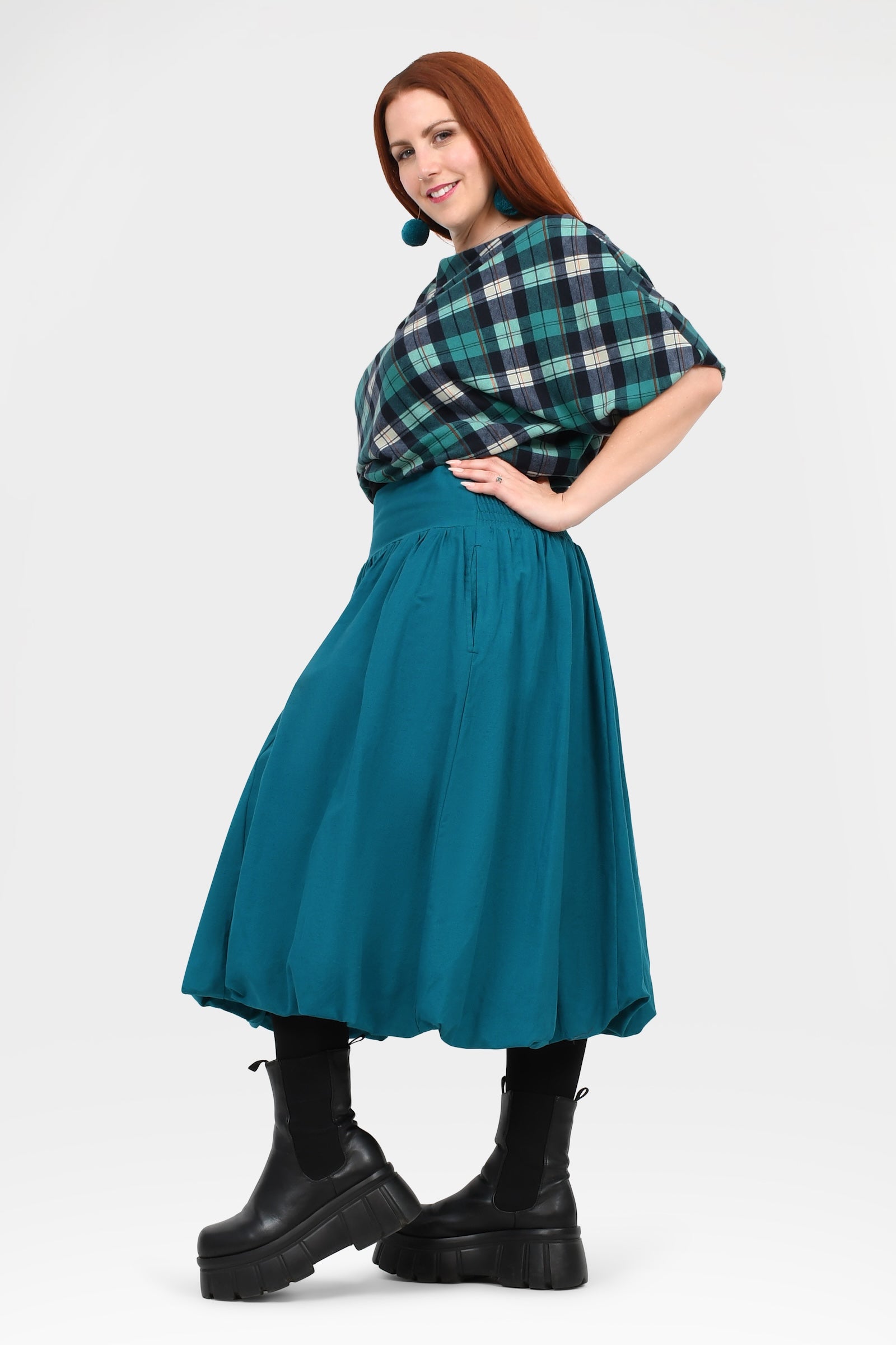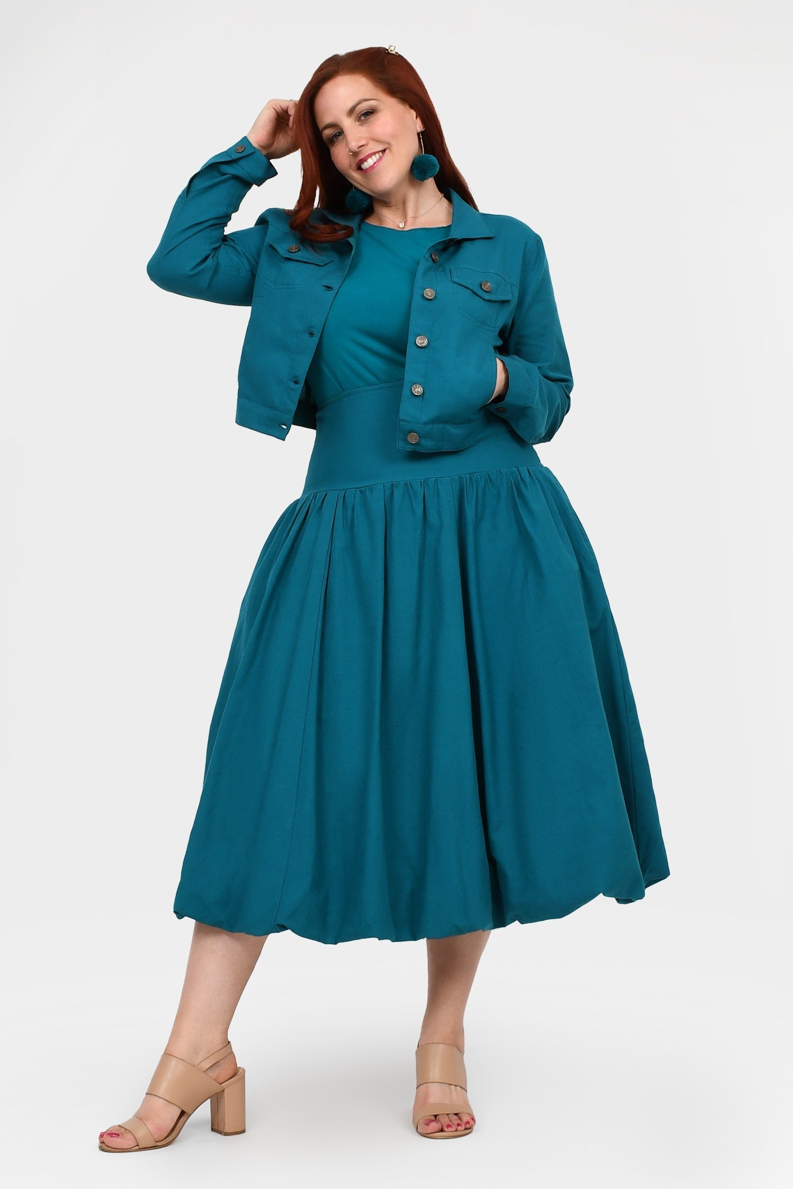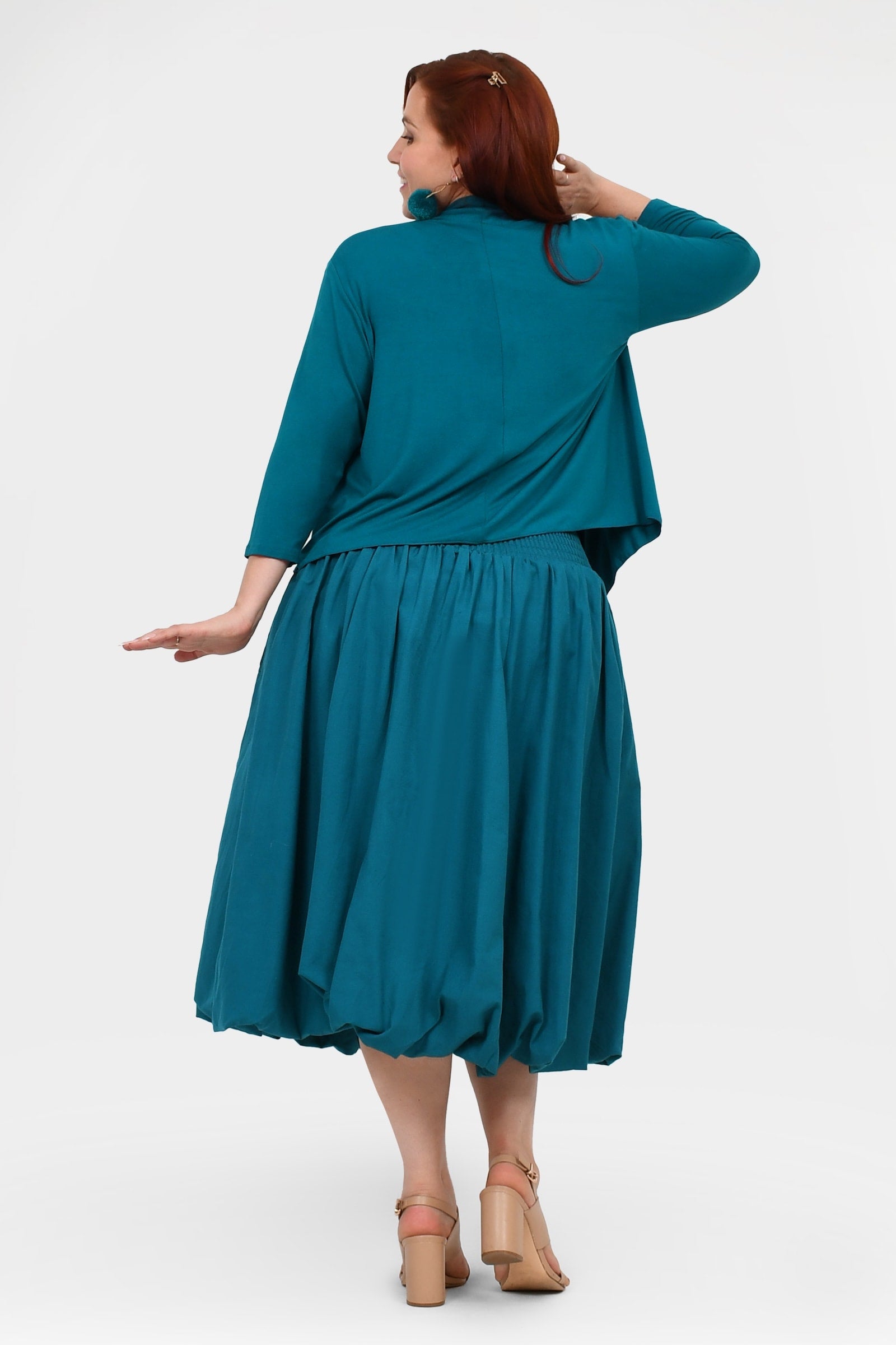 Styling Tip –  Make a statement with the Nora Top in Teal — a bold, playful pop of colour perfect for turning heads. Finish with Pom Pom Earrings in Teal for extra fun and Keshet vibes!