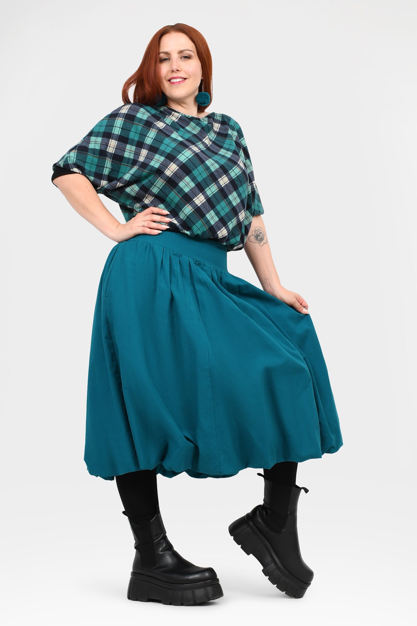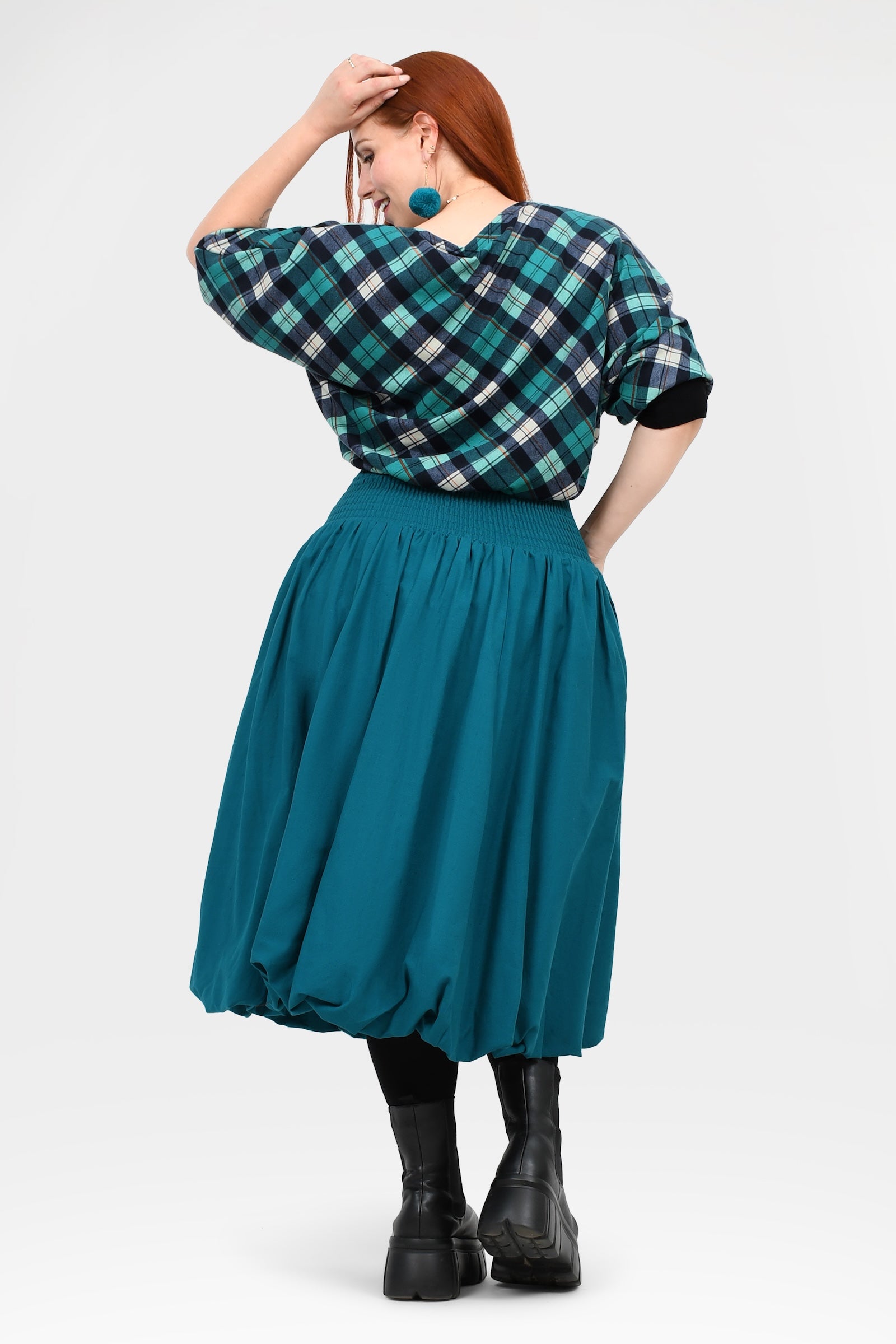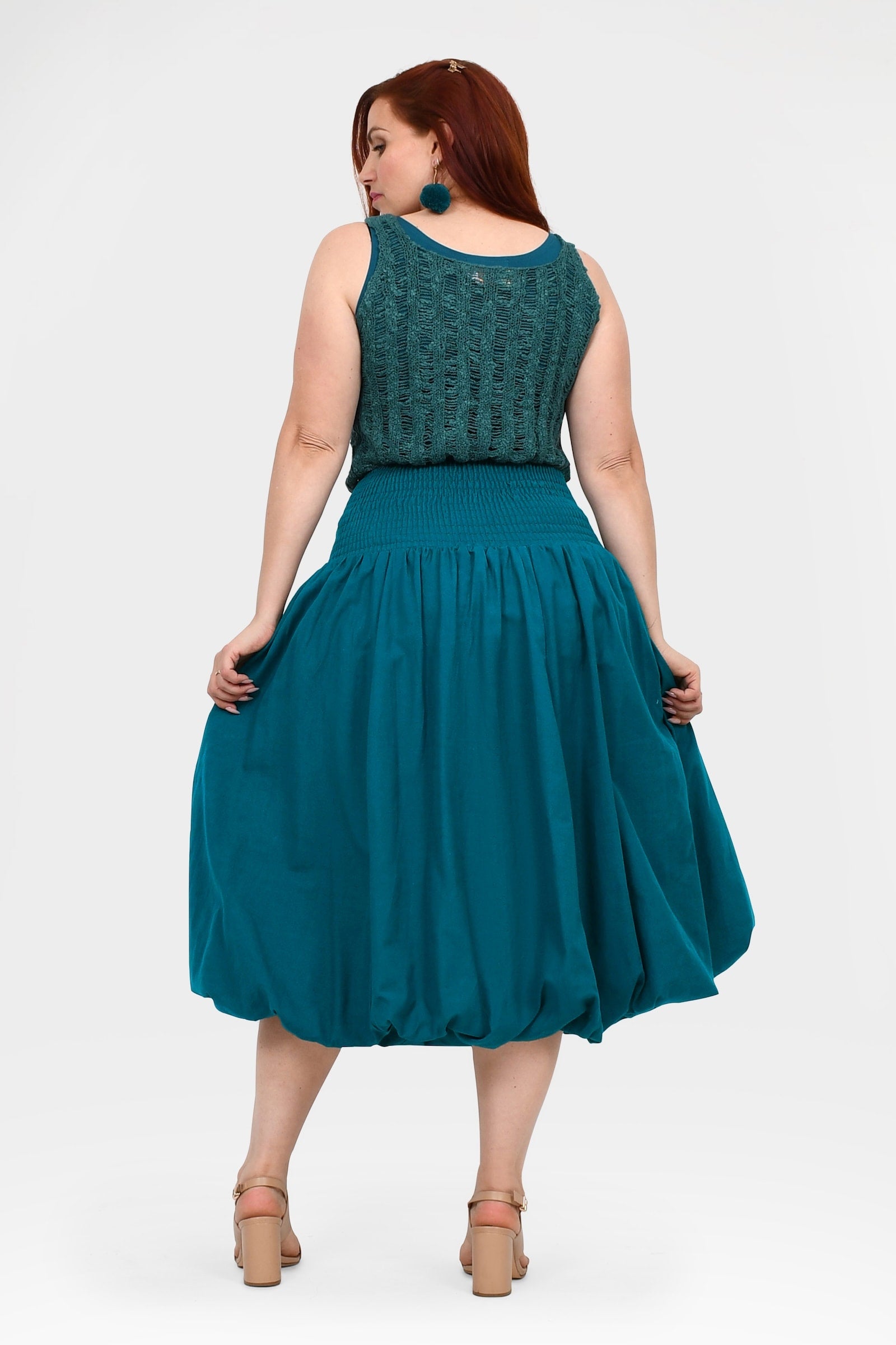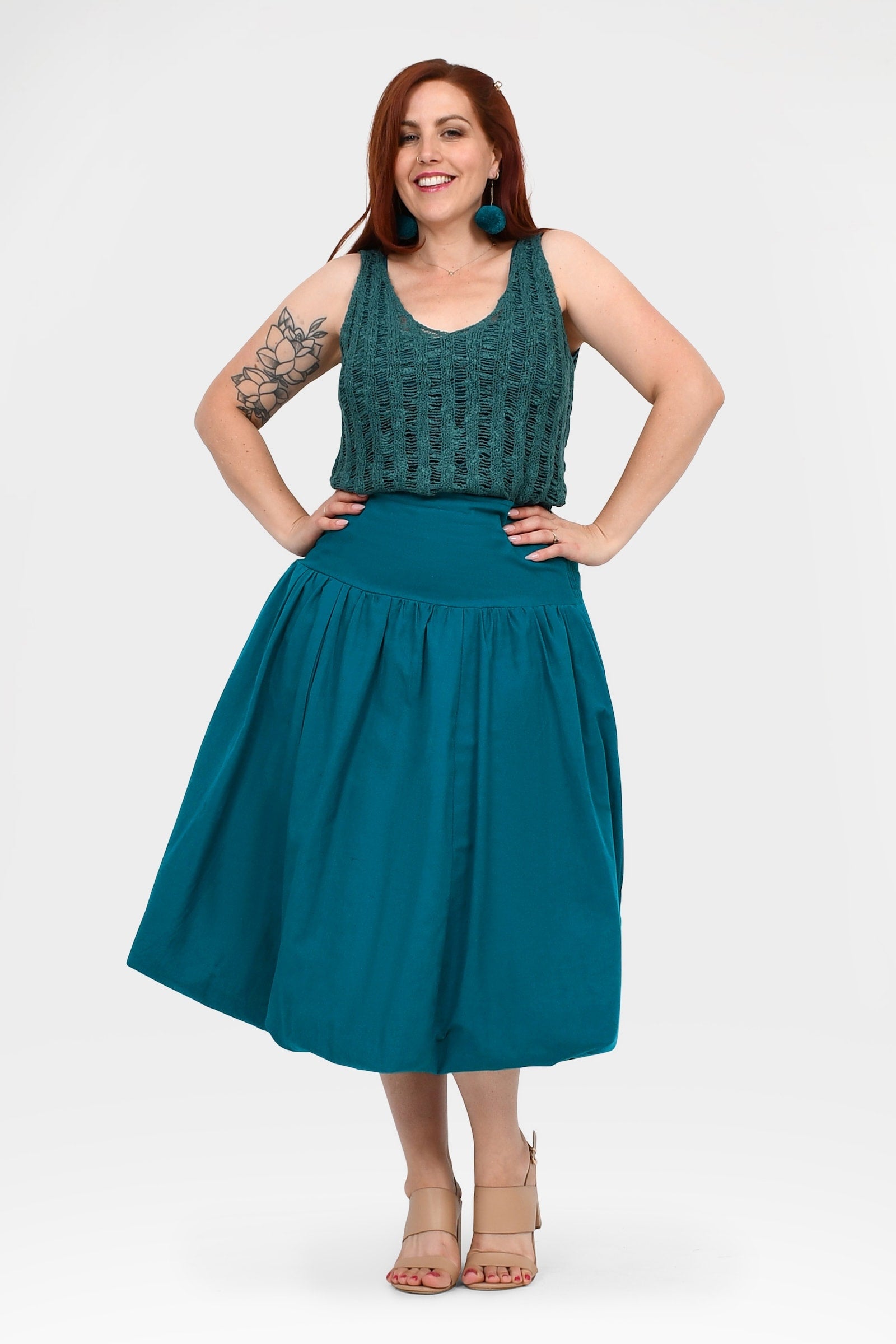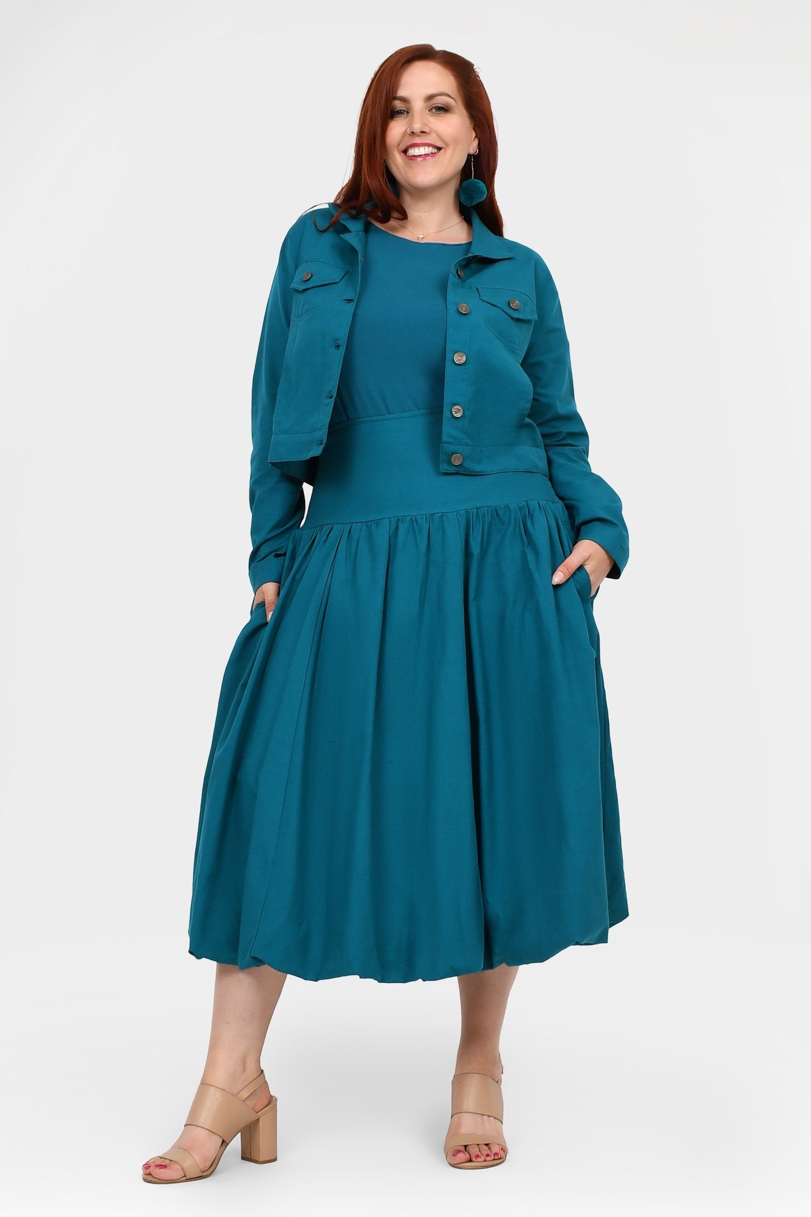 Styling Tip –  Make a statement with the Nora Top in Teal — a bold, playful pop of colour perfect for turning heads. Finish with Pom Pom Earrings in Teal for extra fun and Keshet vibes!