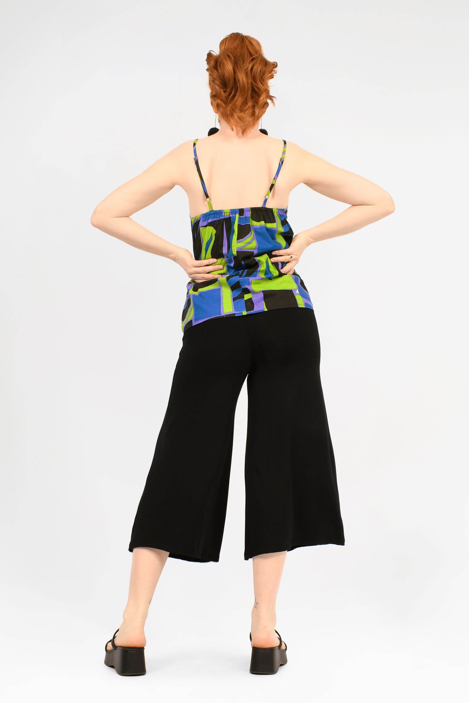 Made from stretchy 95% Rayon and 5% Elastane, these 3/4 length pants are lightweight and silky SMOOTH. The wide-leg cut provides plenty of room to move and the wide waistband ensures nothing but PURE comfort.