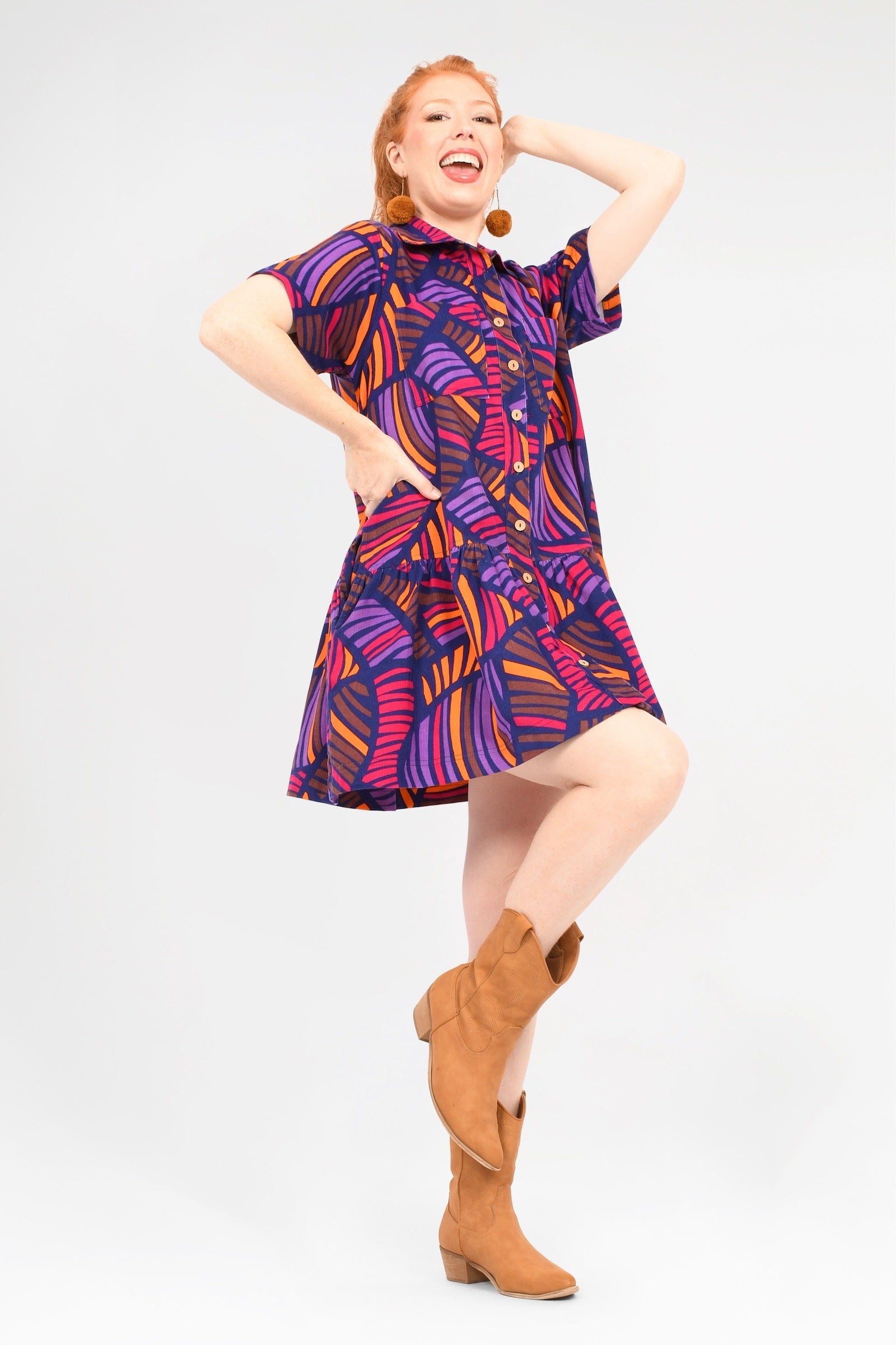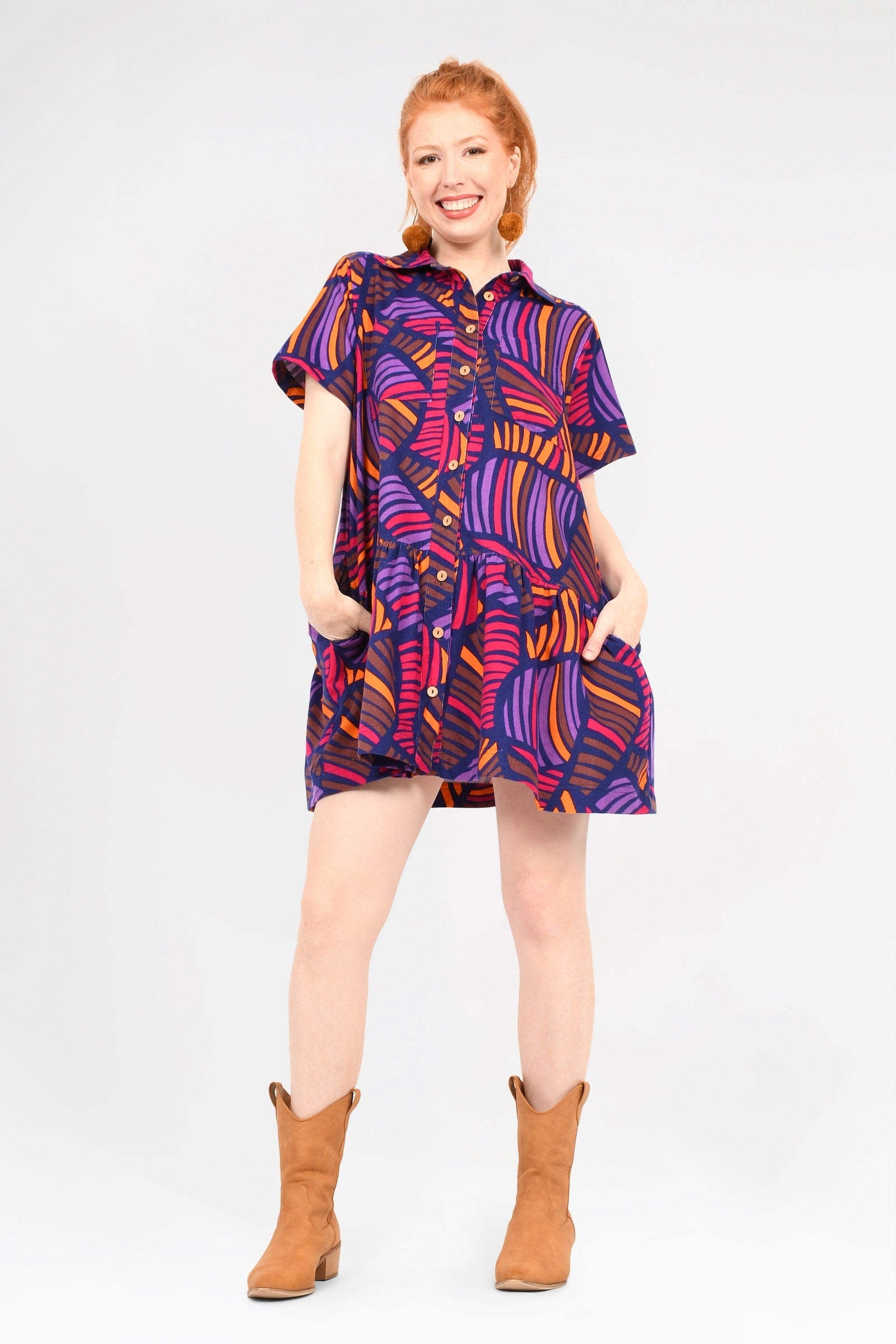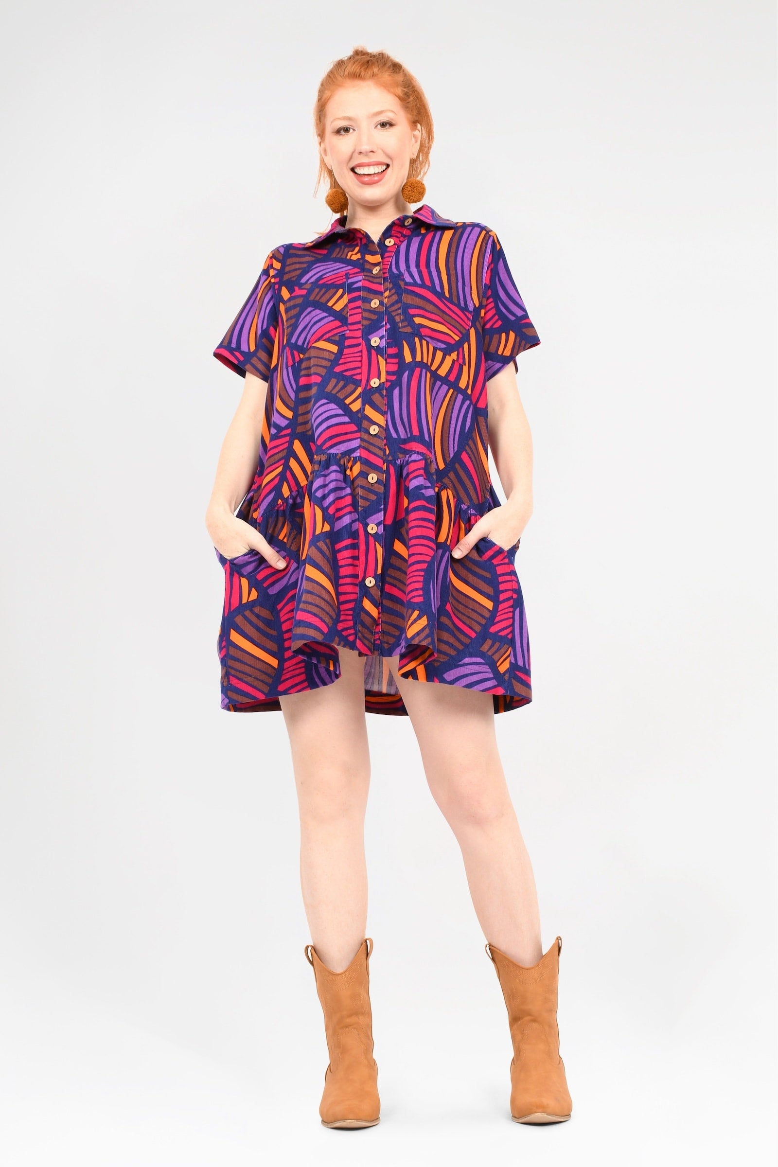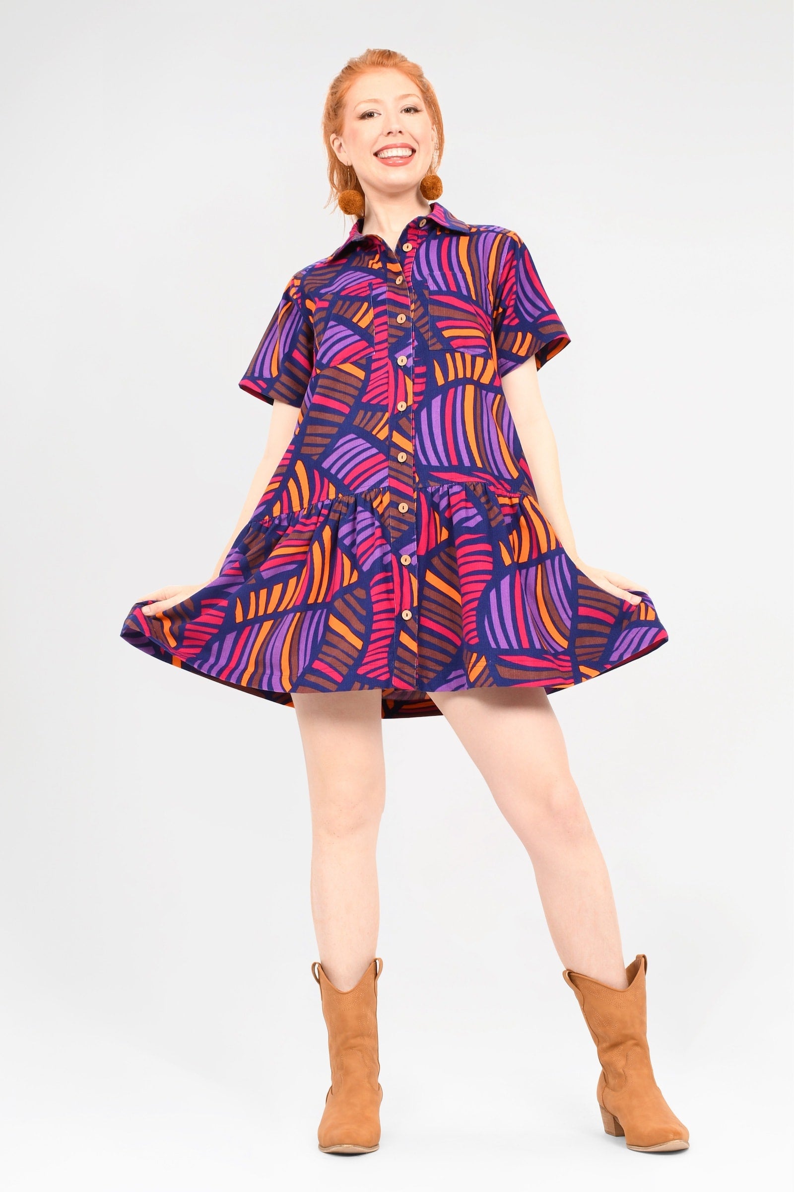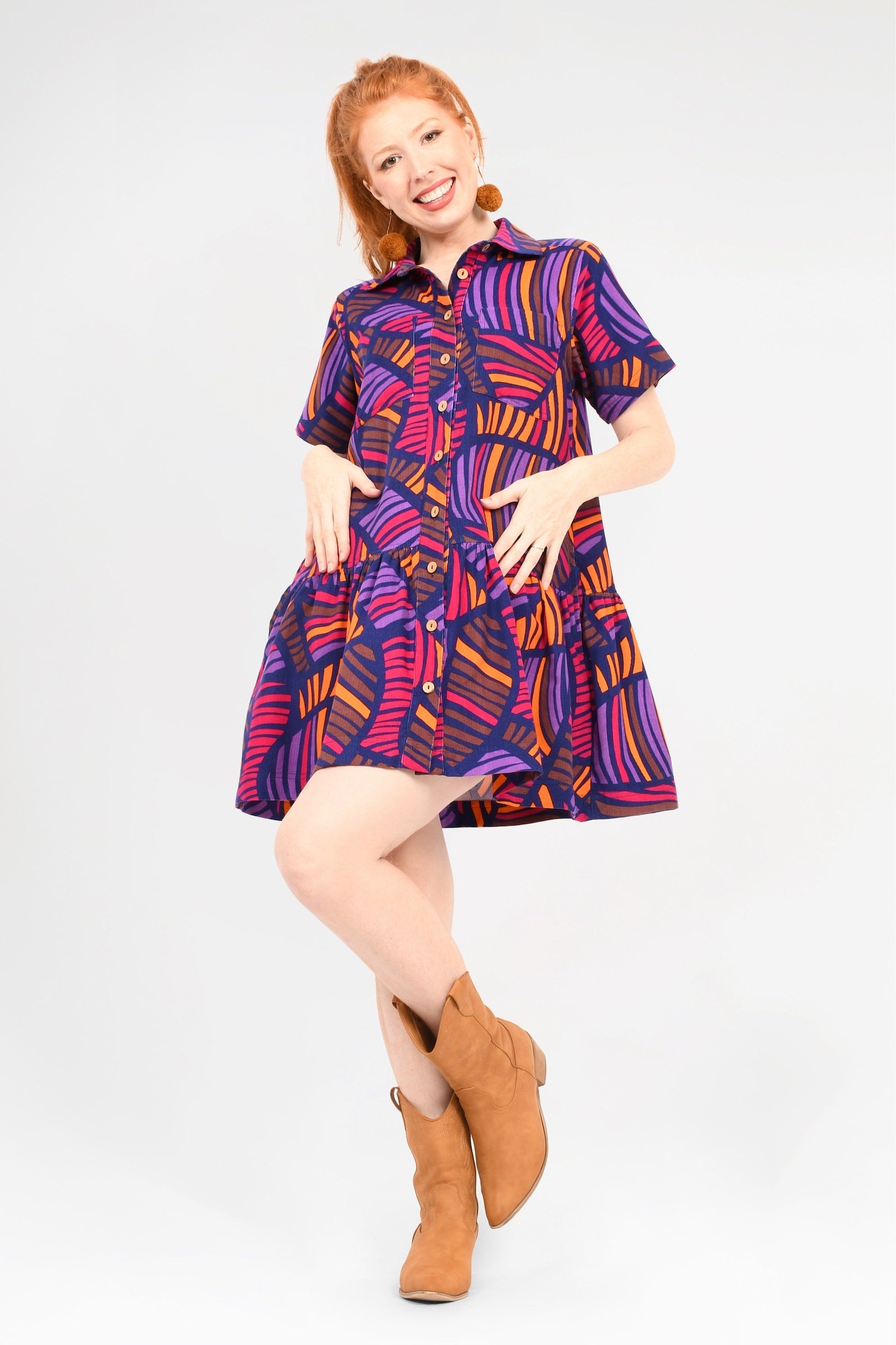 Crafted from 100% Cotton Corduroy, this gorgeous dress is sure to be your new go-to for year-round effortless style! With a functional button line, short sleeves, and super cute collar, this style is as chic as it is practical!