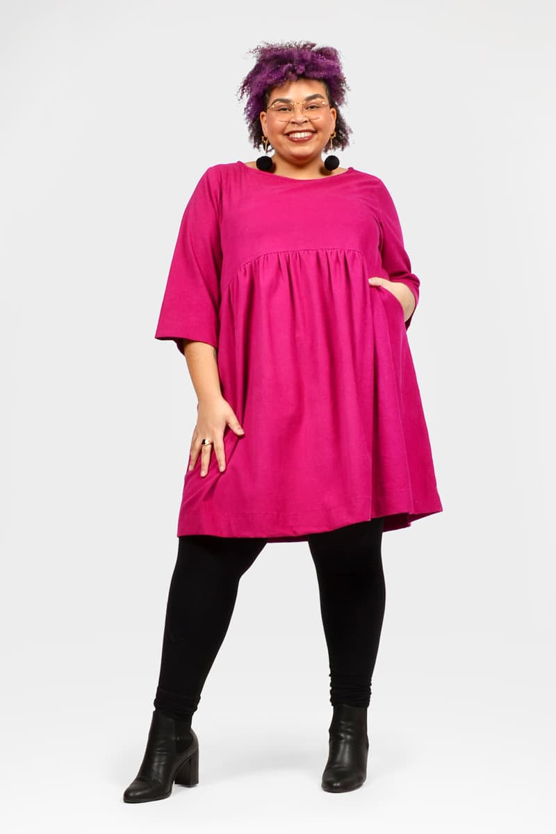 With delicate 3/4 sleeves and a GORGEOUS empire waistline, this dress is a layering DREAM. Miley is a super cute BabyDOLL style that changes with the seasons!