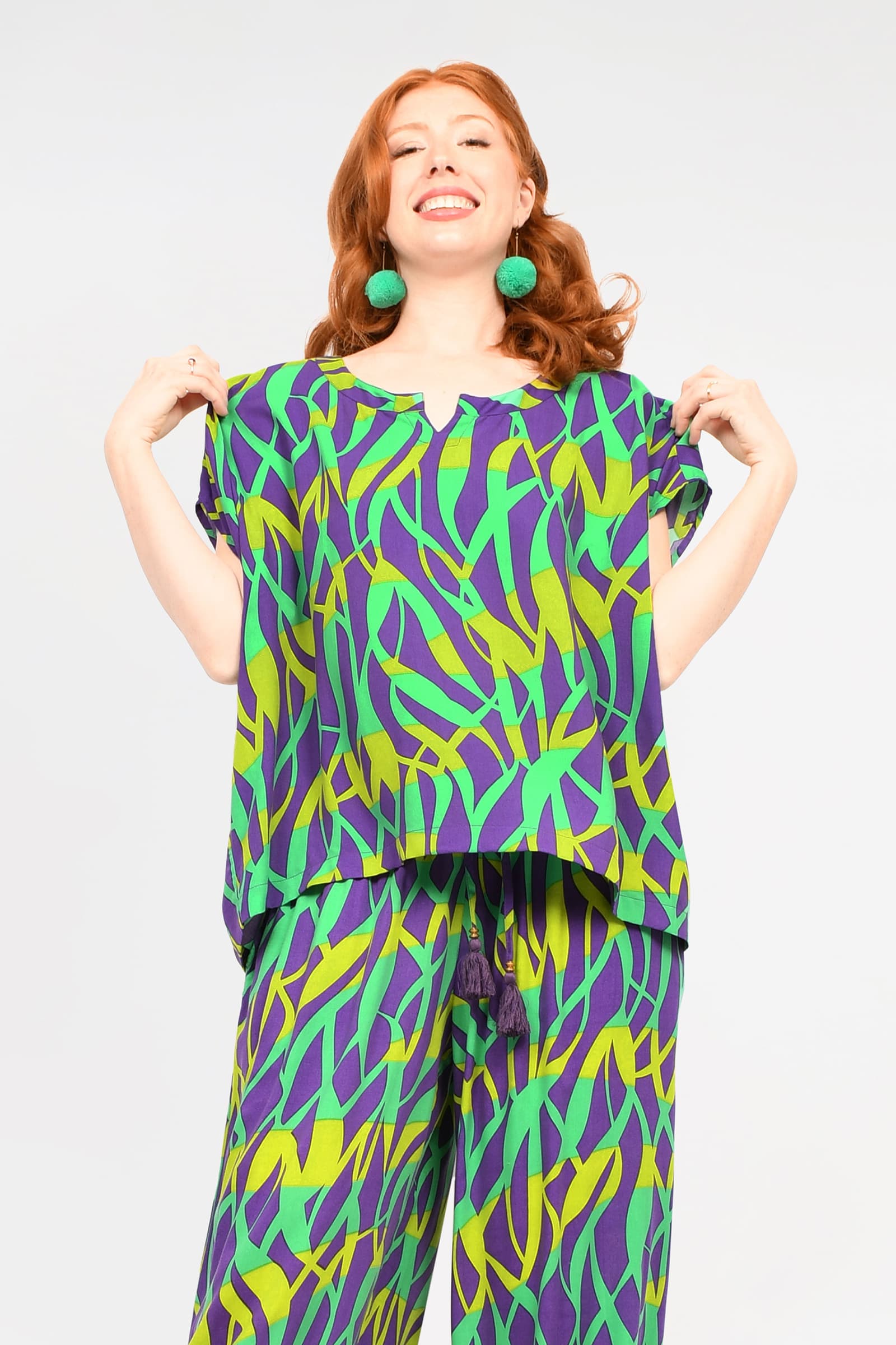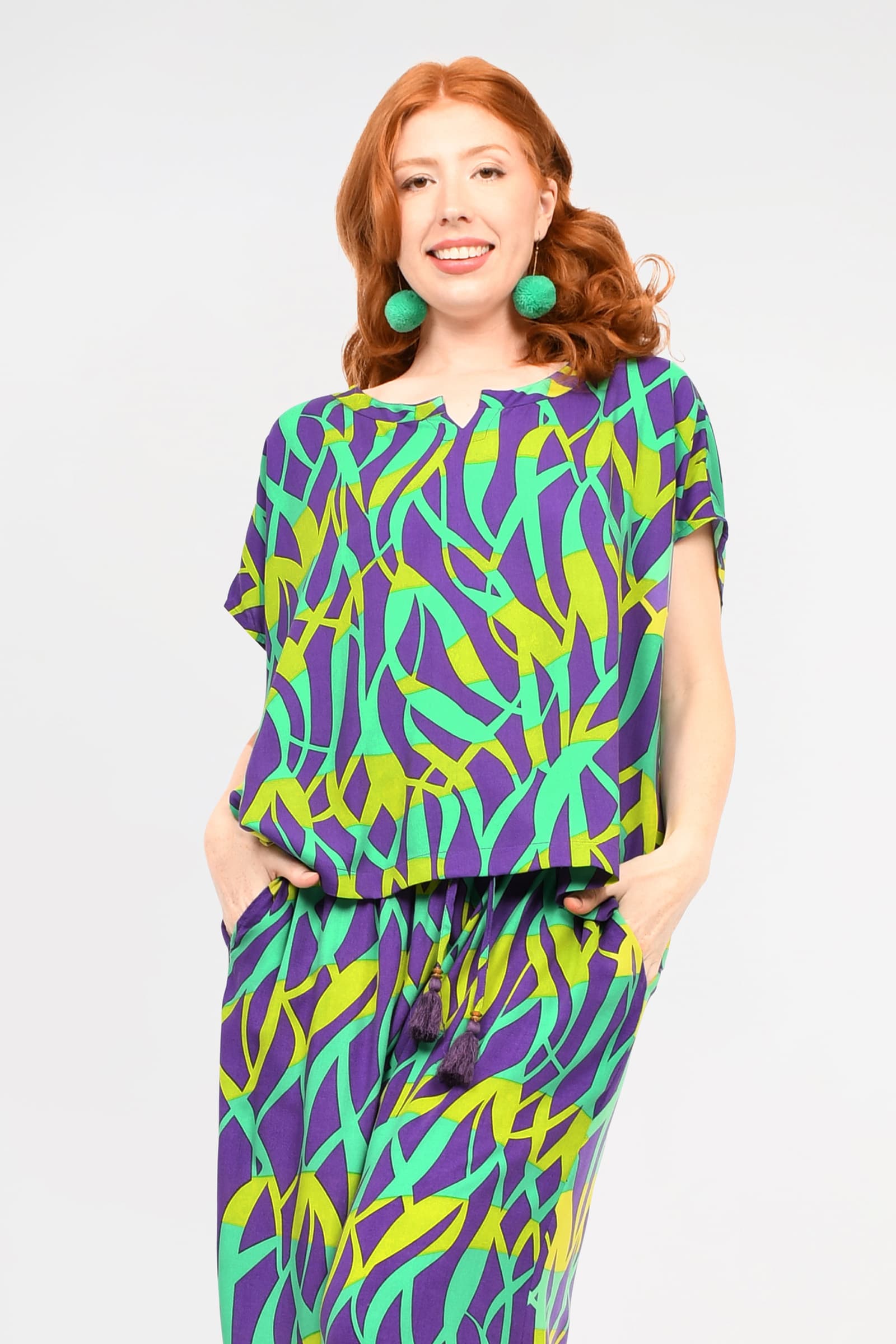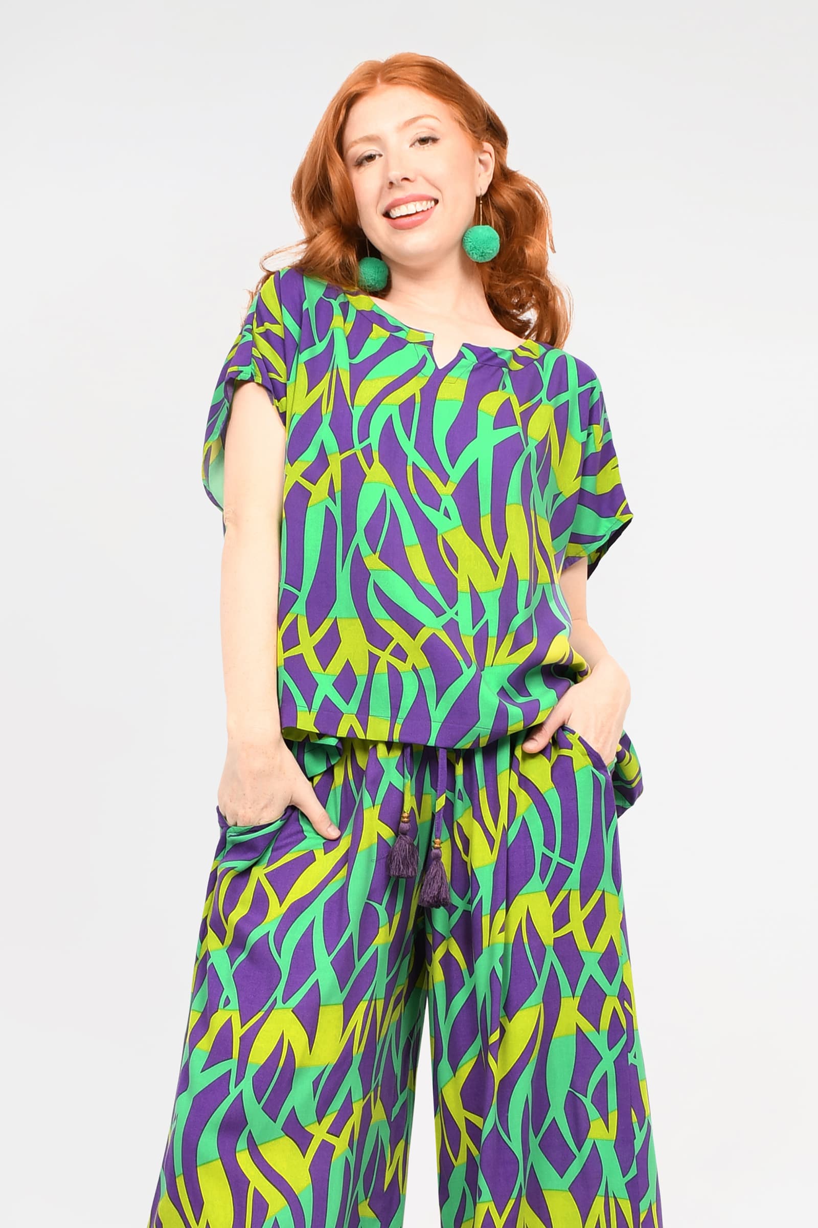 Styling Tip - Go matchy-matchy with our Abigail Pants in our Sea Grass prints and you are set for dinner on the beach, babe!