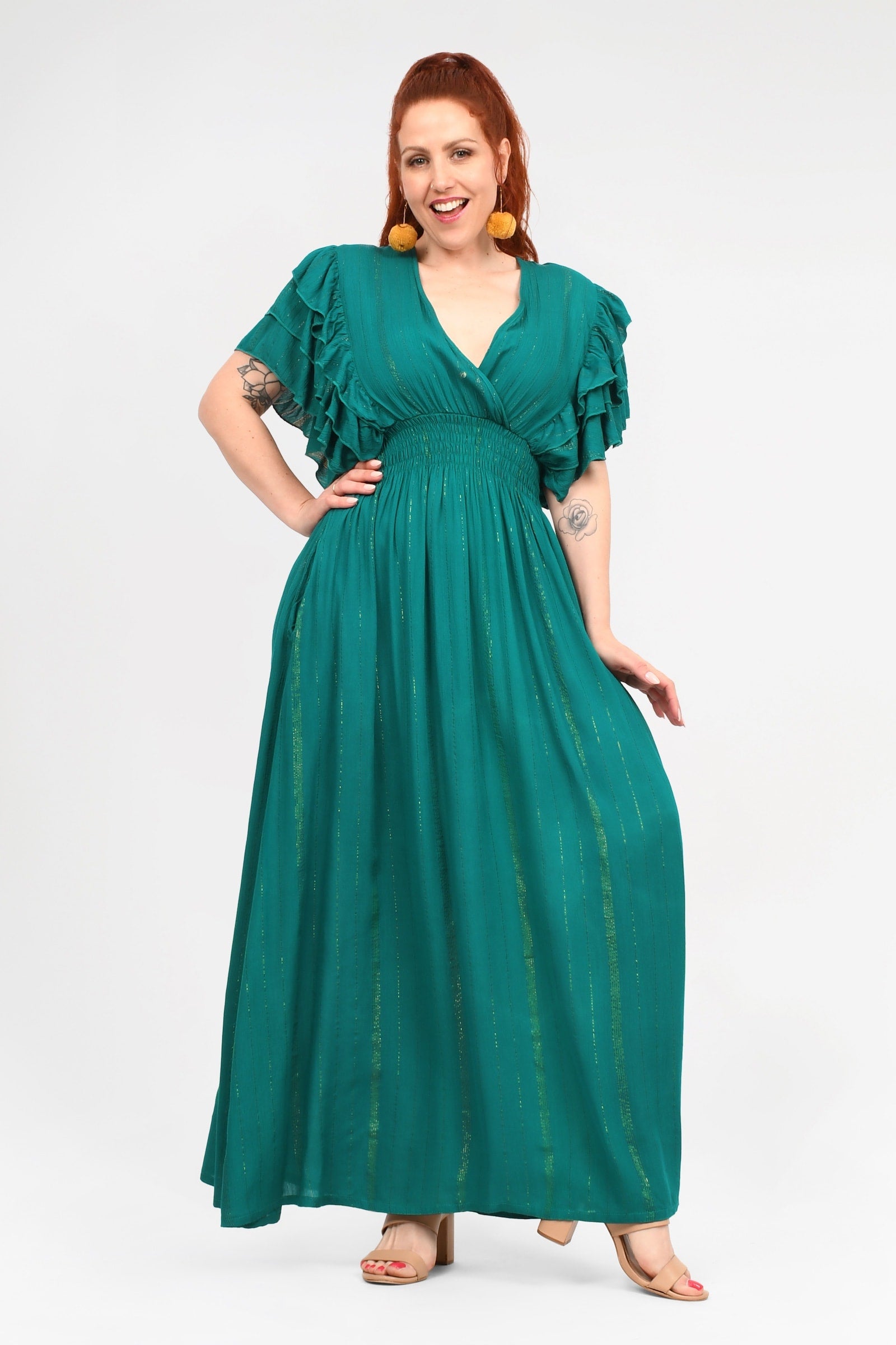 - The statement flutter sleeves add a playful and feminine touch - so gorgeous!!