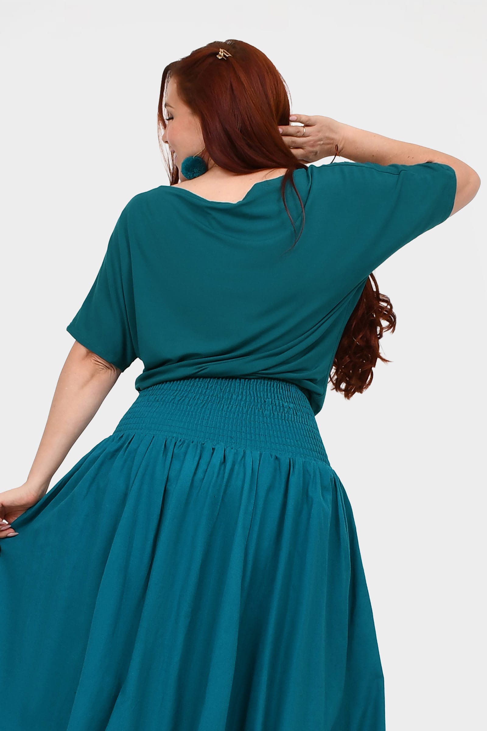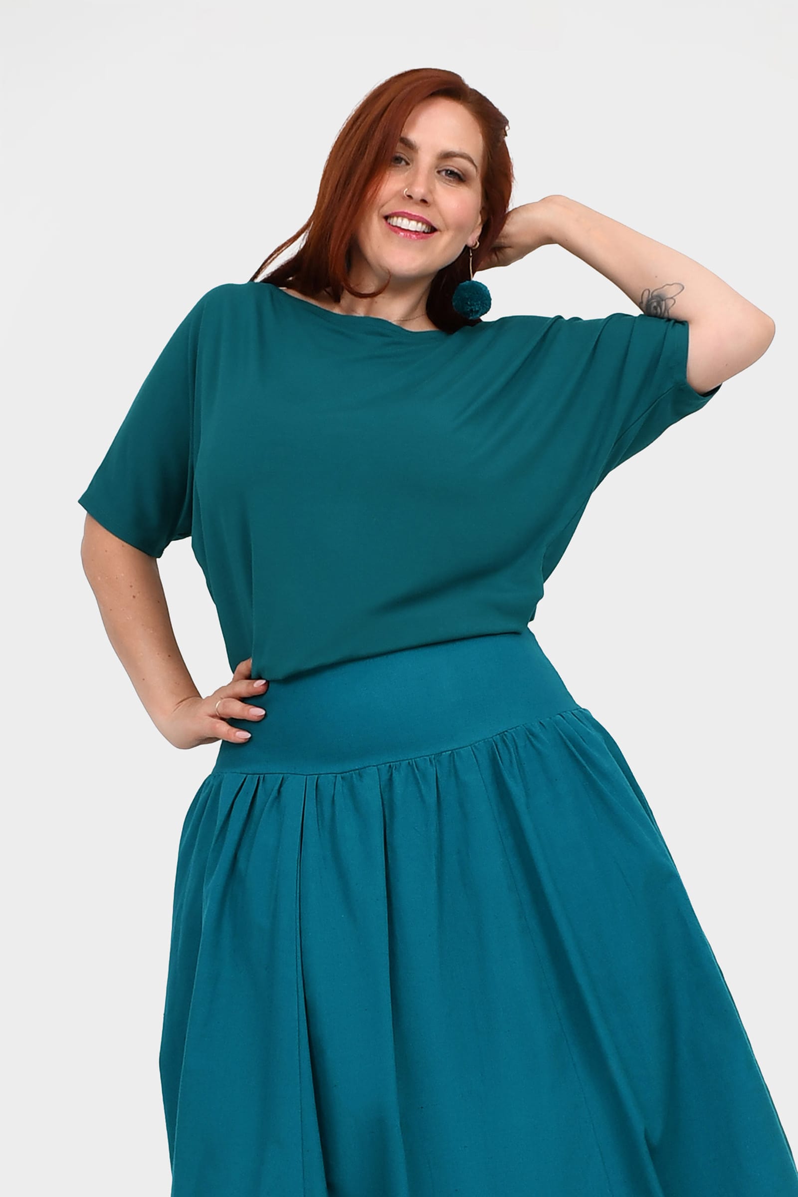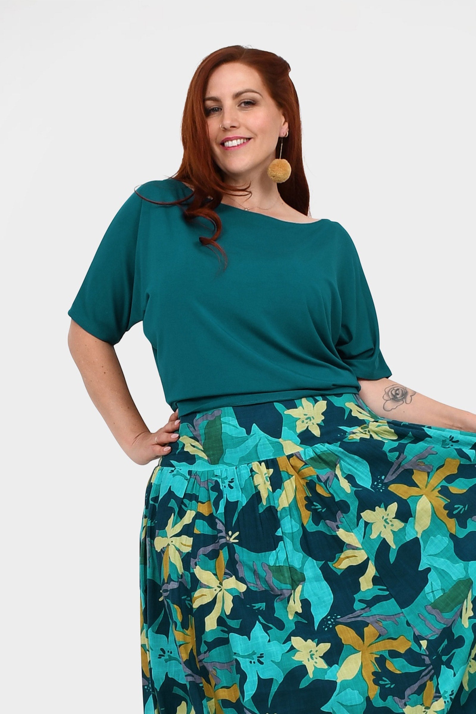 - Batwing short sleeves give a breezy, relaxed feel, while the classic round neckline adds a timeless, flattering touch.