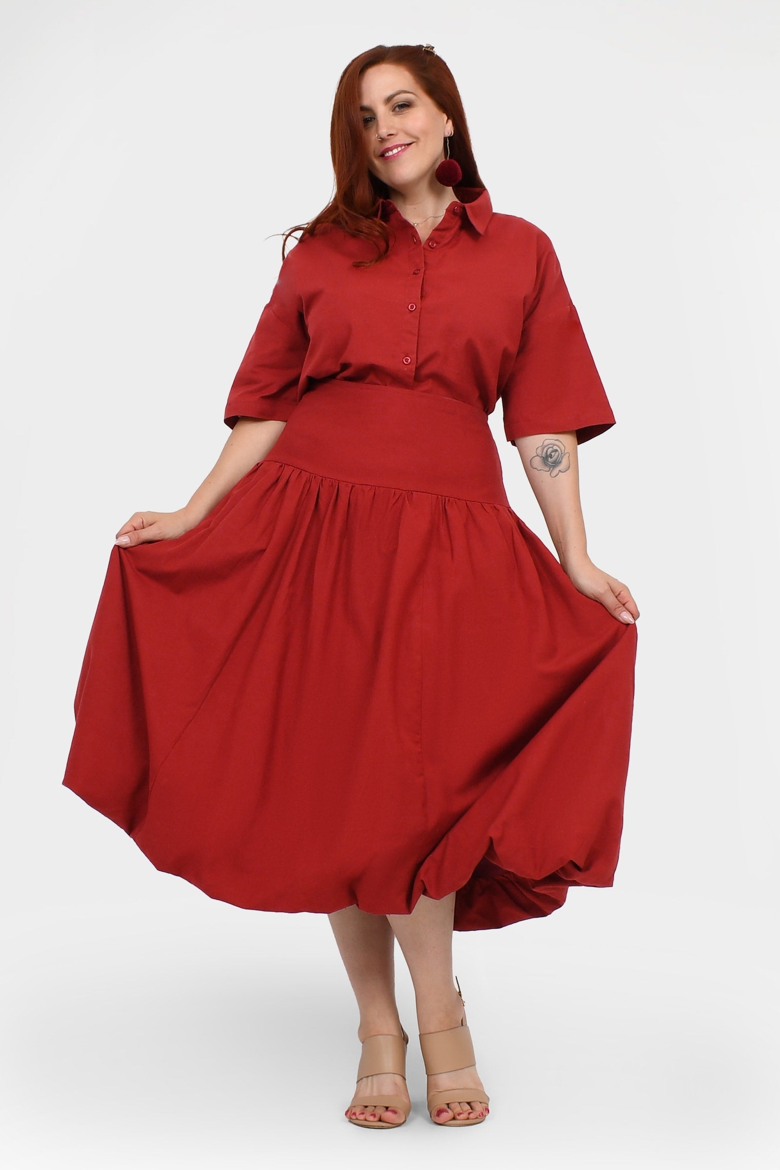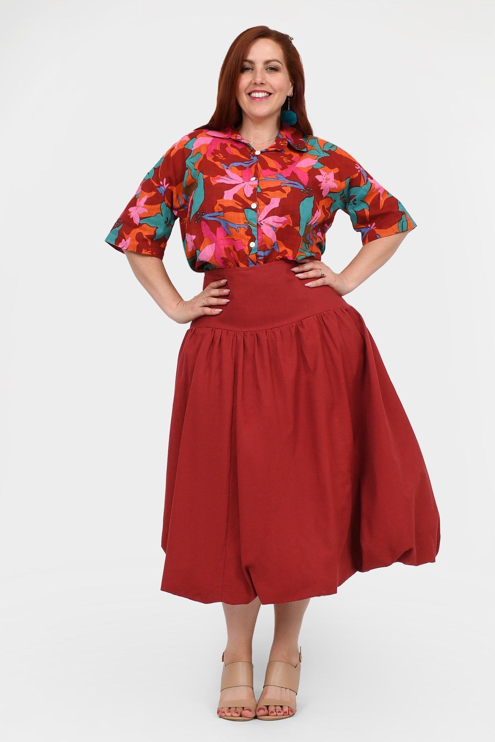 Styling Tip – Make a statement with the Nora Top in Red — a bold, playful pop of colour perfect for turning heads. Finish with Pom Pom Earrings in Magenta for extra fun and Keshet vibes!