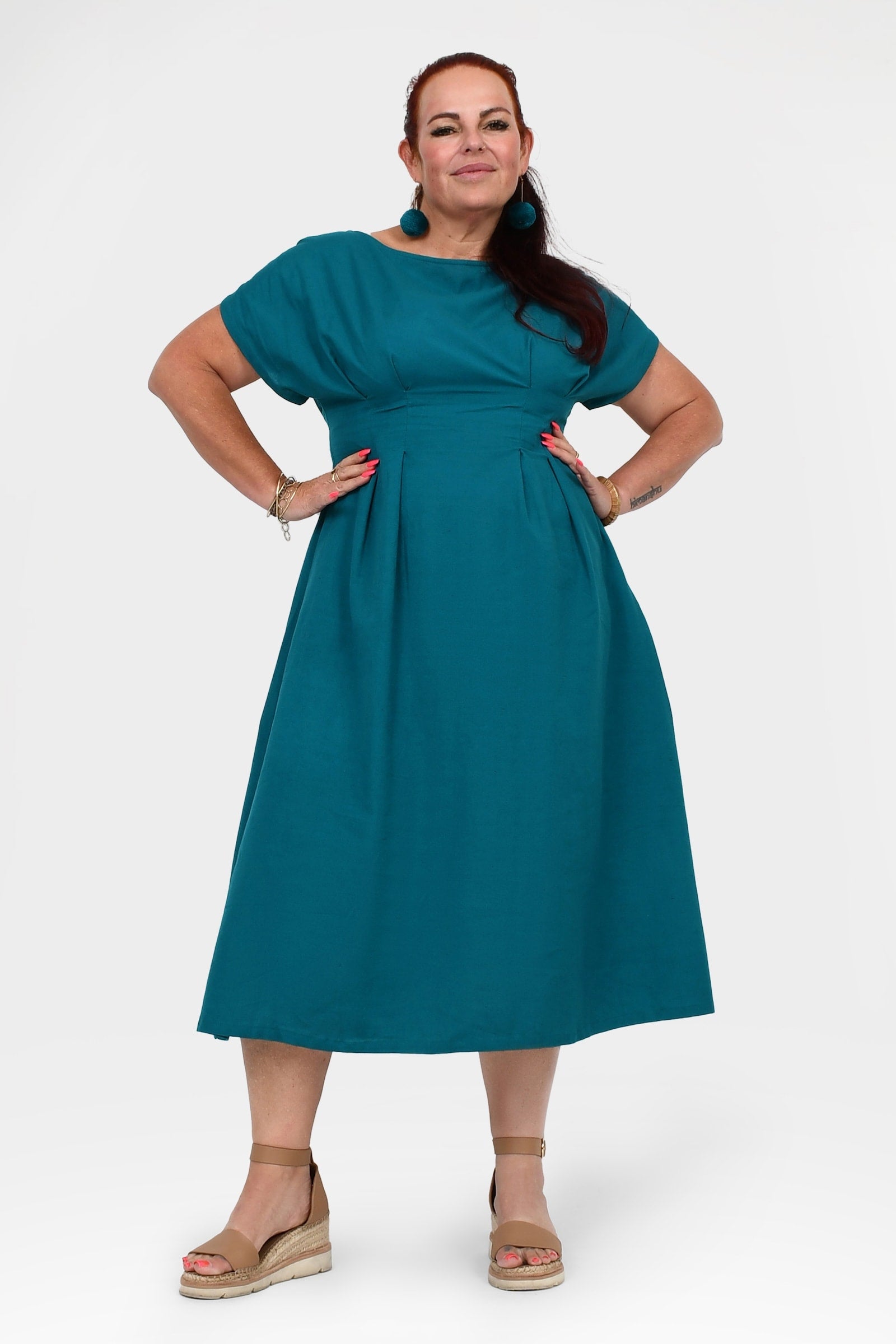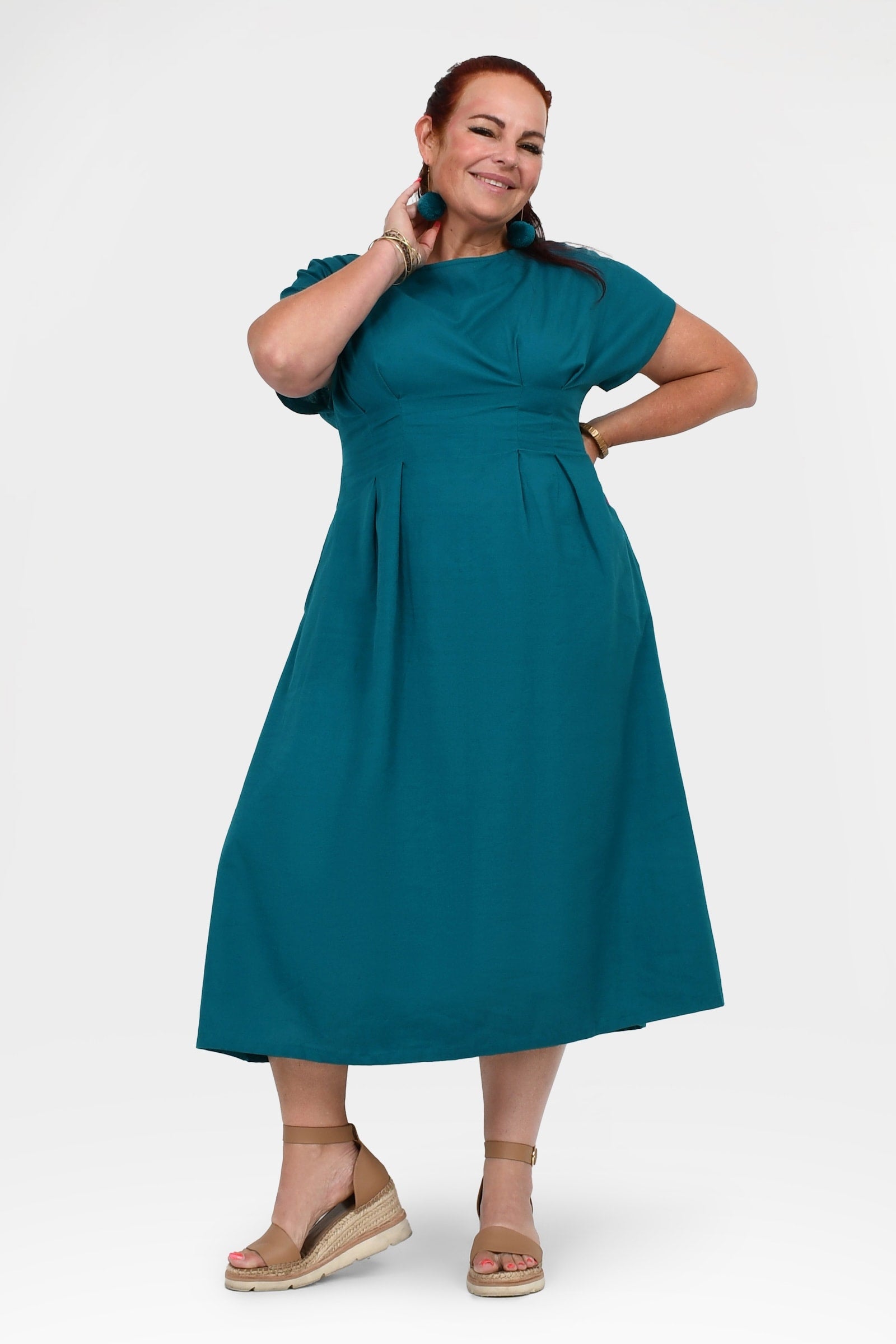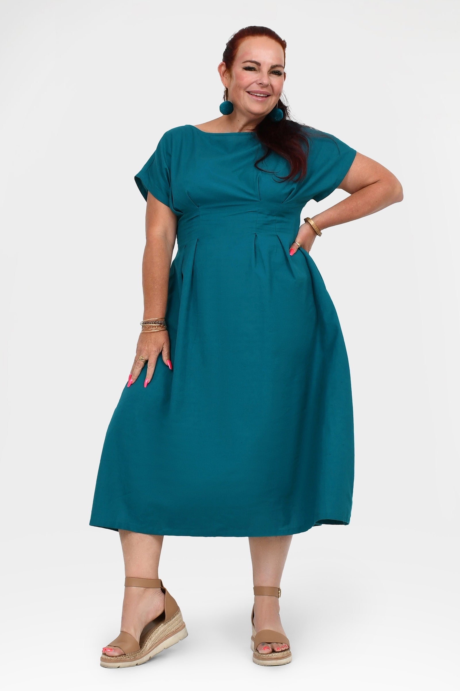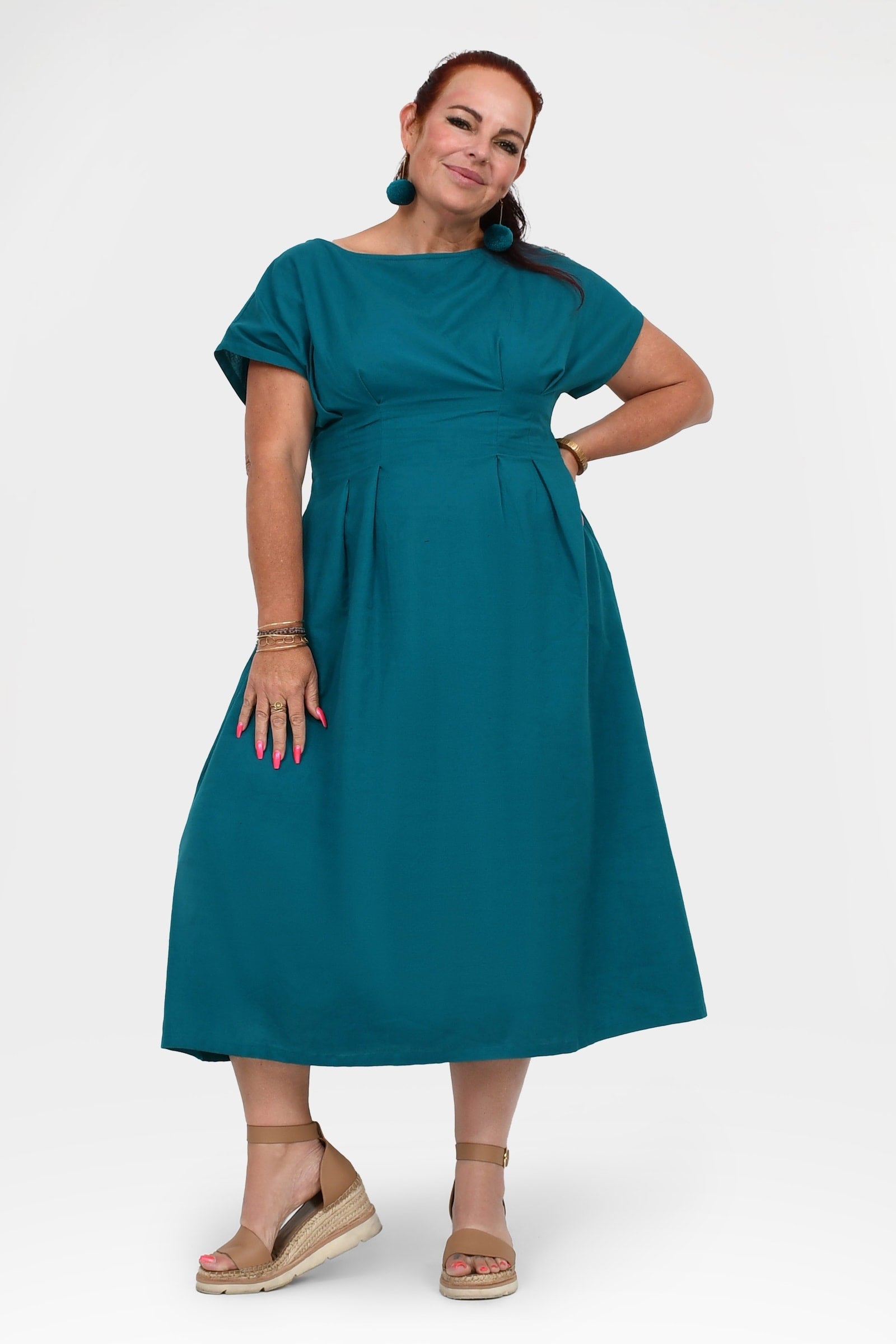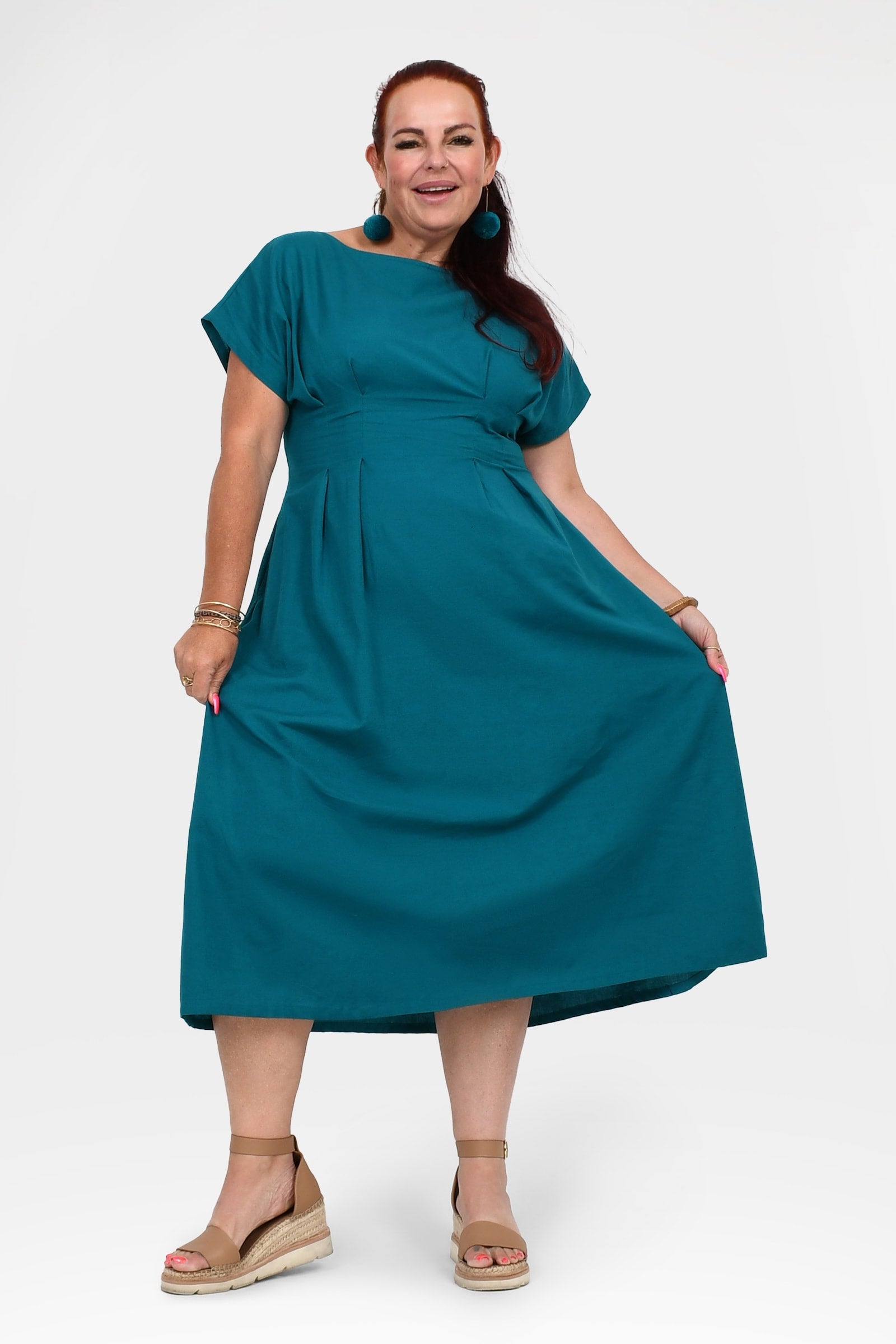 Styling Tip – Pair with Pom Pom Earrings in Teal and white sandals for an easy, casual daytime outfit. Perfect for brunch, coffee dates, or weekend walks!