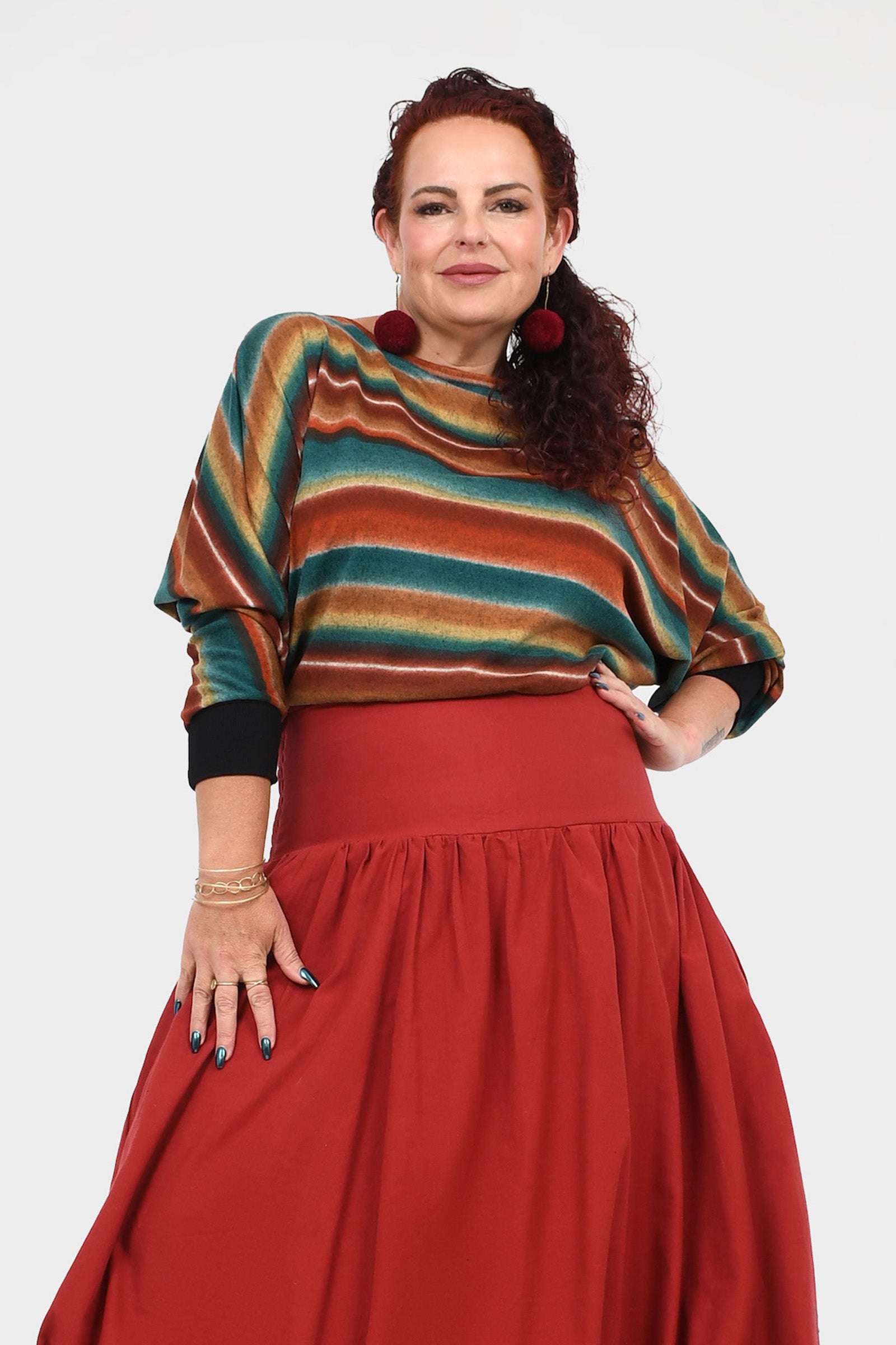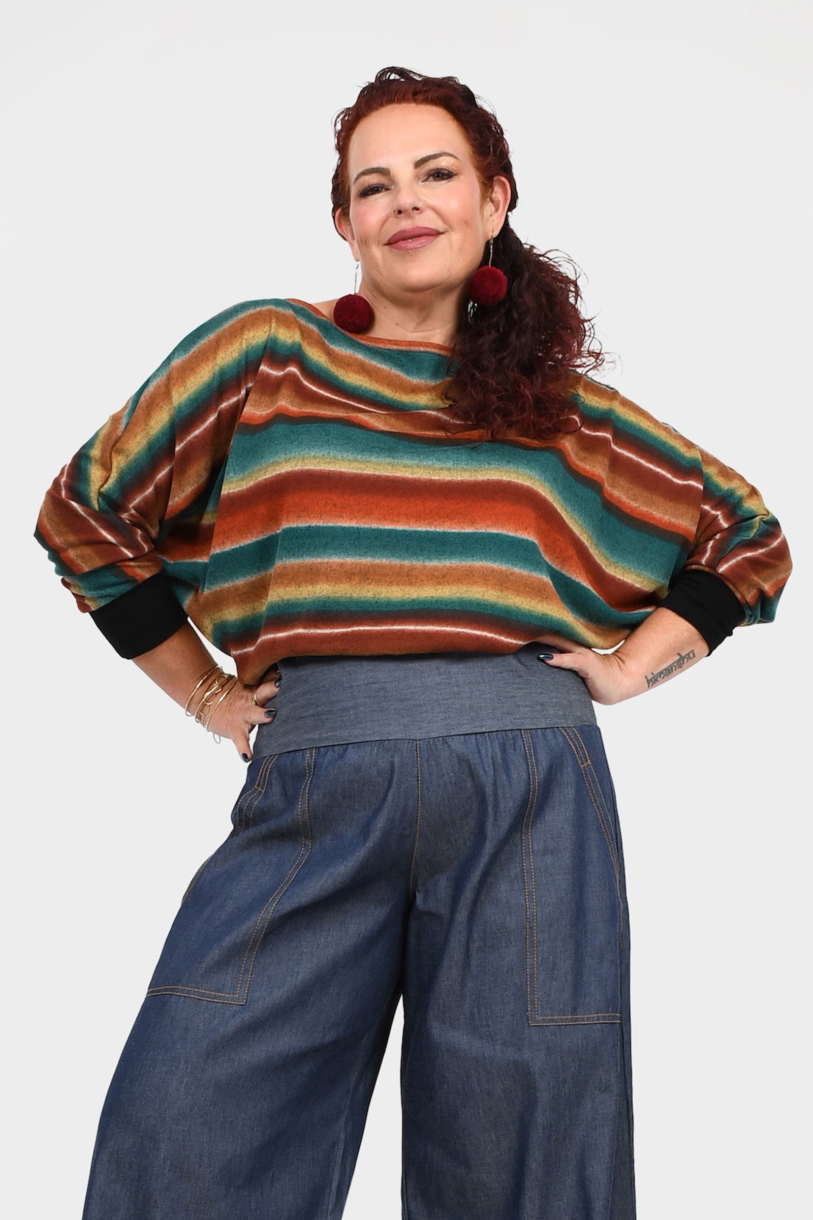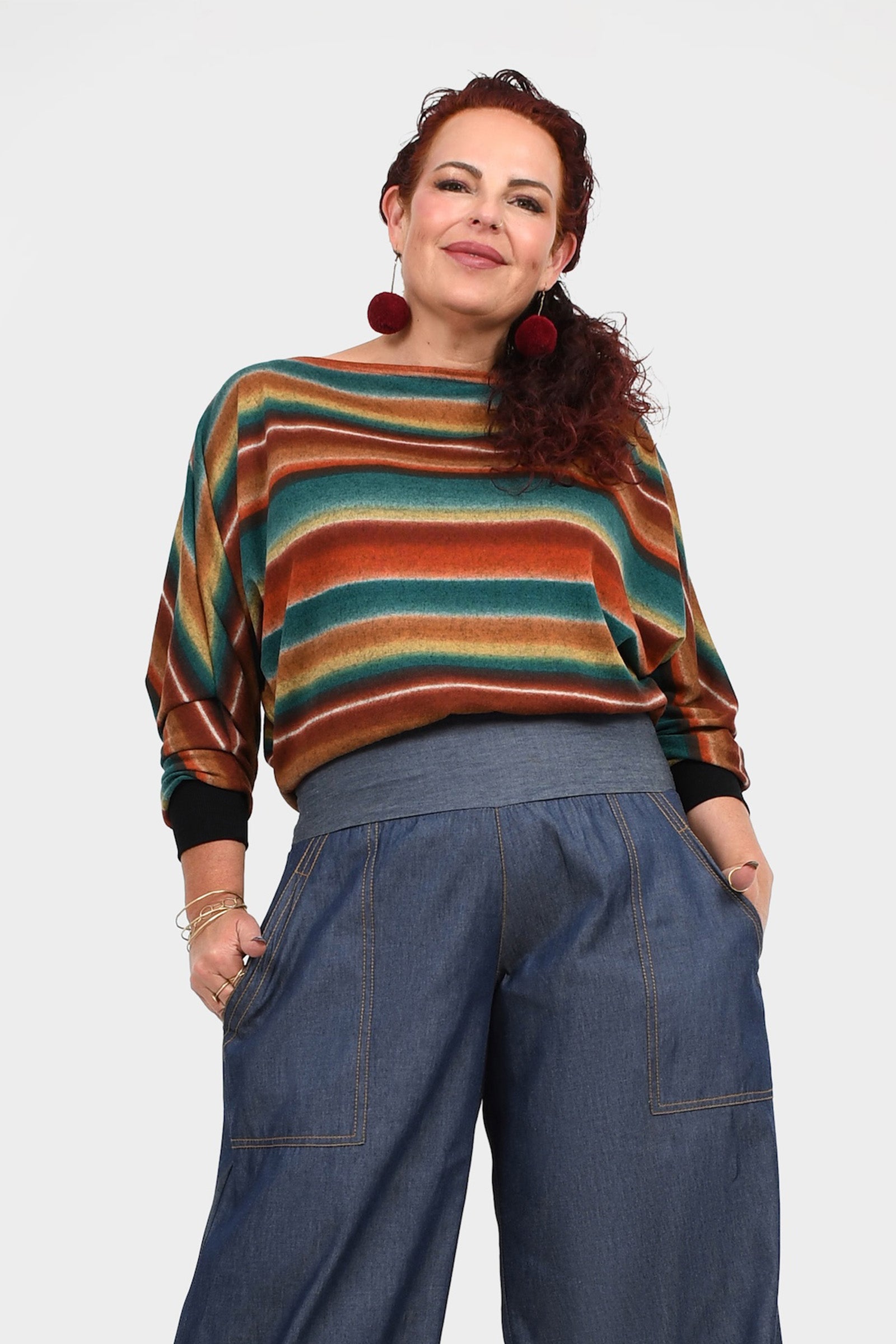 Styling Tip - Layer the Moxie Jumper with your Stevie Pants in Daybreak, add Pom Pom Earrings in Rust and finish with boots for effortless winter style — perfect for chilly days and cosy evenings!