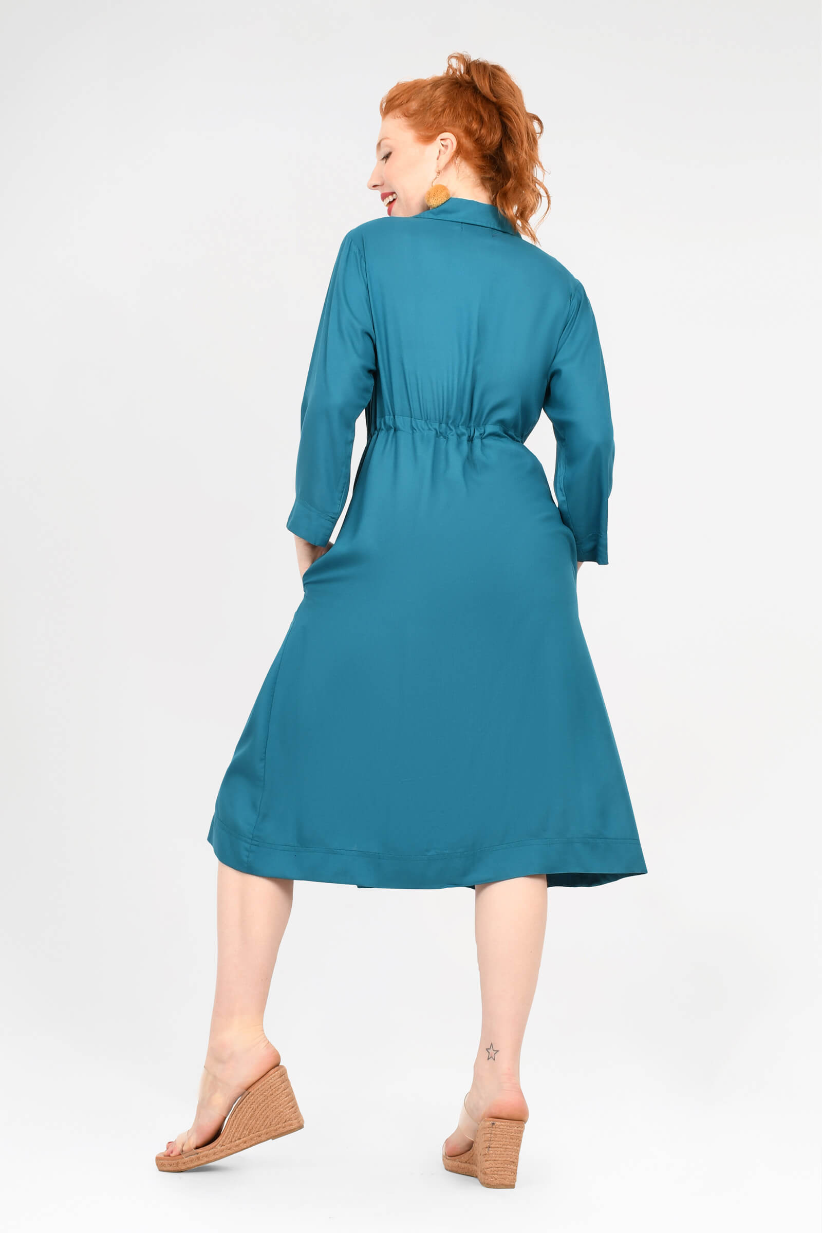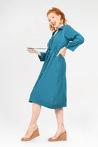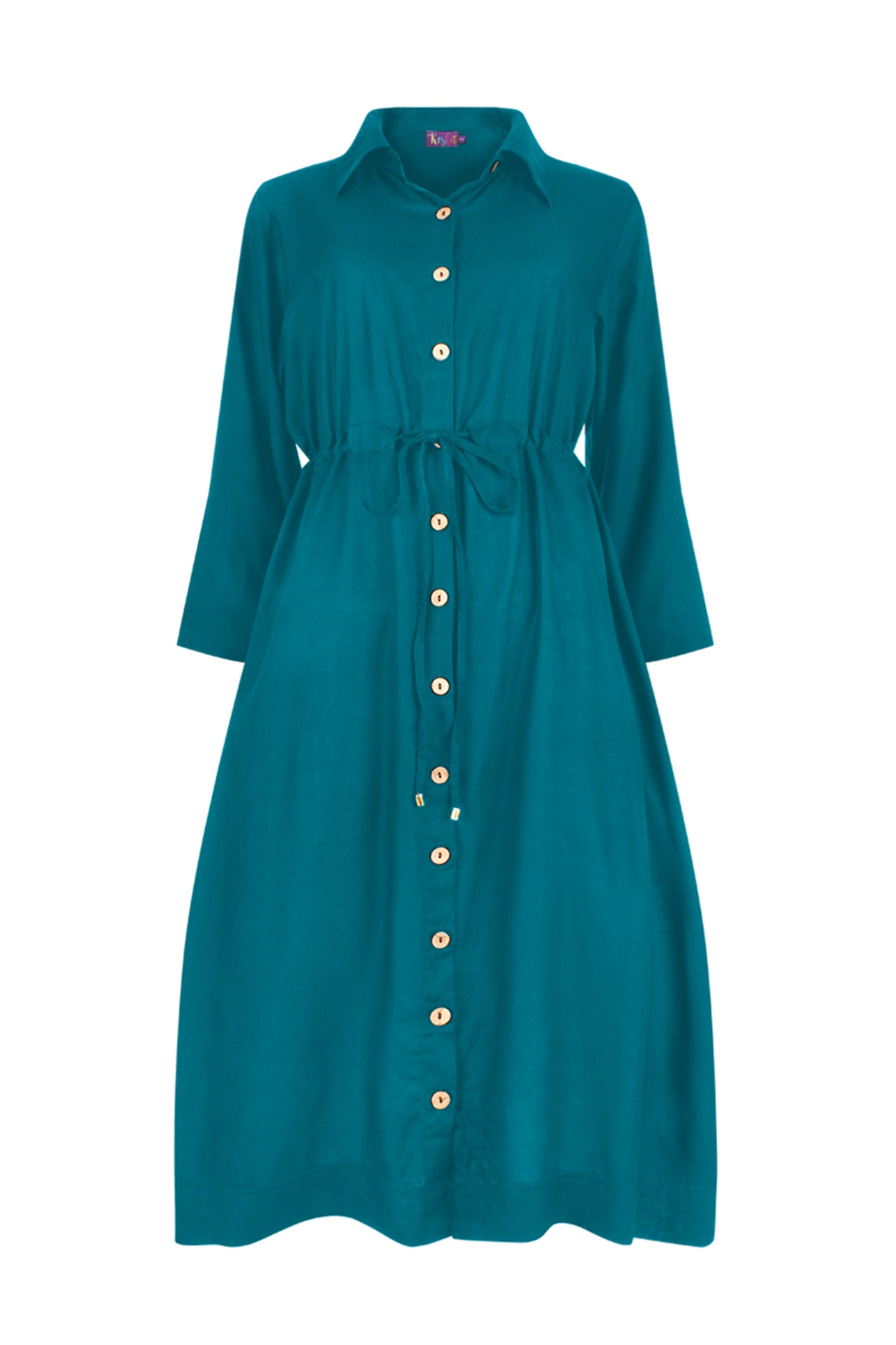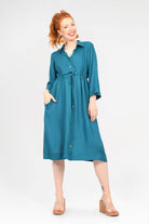 Our Kelsey Dress is back better than ever! Grab this beautiful 100% Luxe Woven Rayon style in our GORGEOUS New plain colours! Featuring functional buttons, an adjustable tie waist, 3/4 length and POCKETS you really can't go wrong with Kelsey!