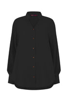 - Featuring a refined V-neck with a slim, slightly raised collar — a fresh twist on a classic shirt, elongating the neckline and adding subtle elegance to any outfit.