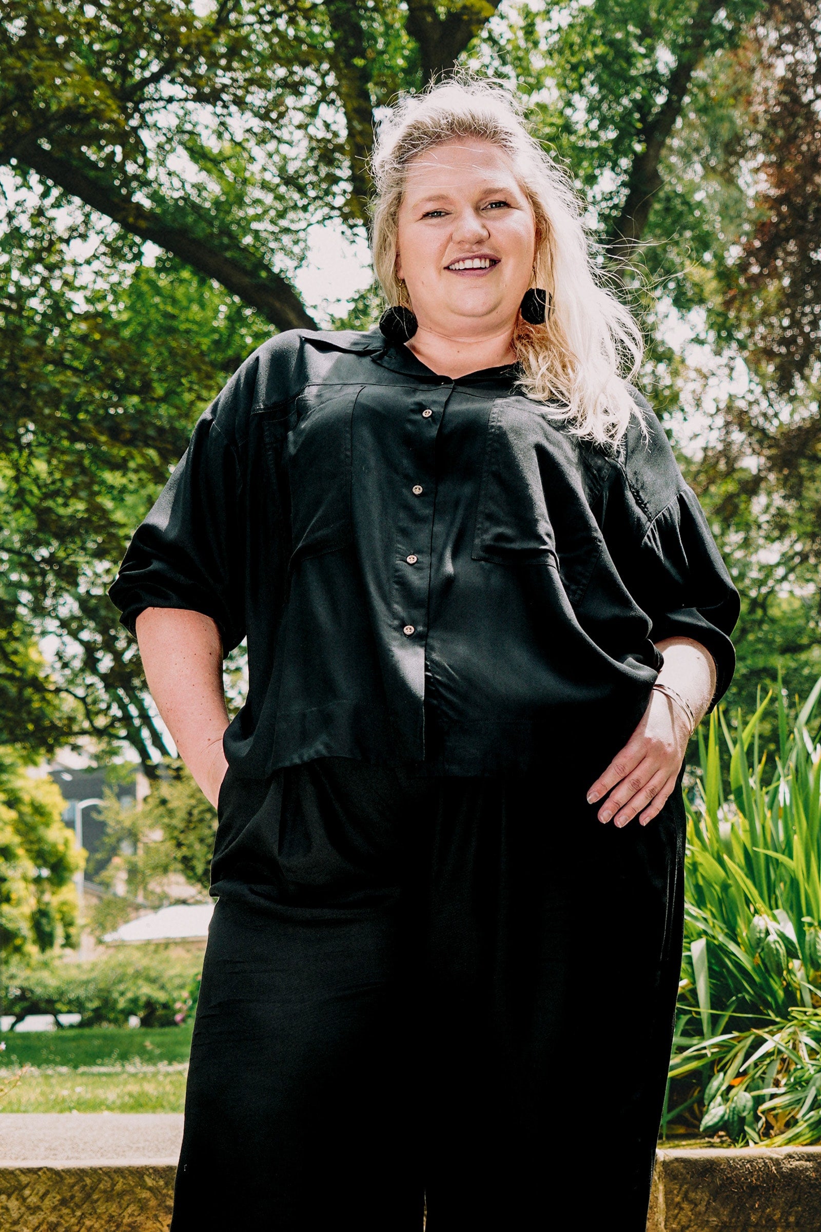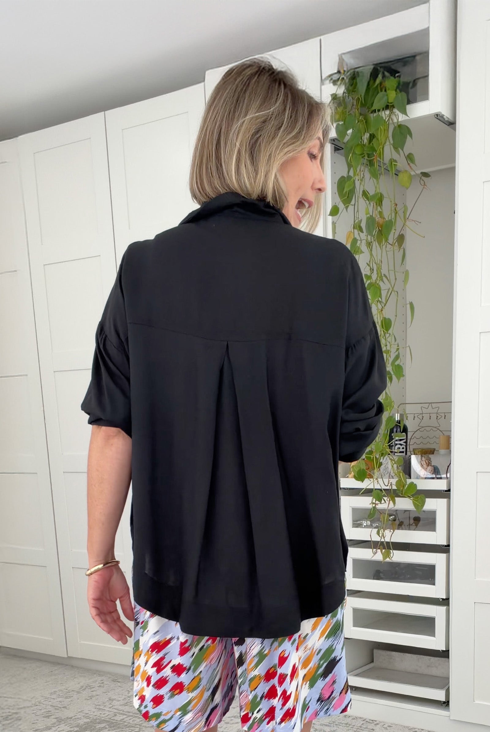 Styling Tip - Leave it untucked over your favourite Sloane Pants in Black or tie it at the front with Piper Shorts in Black for playful vibes. Add sneakers for daytime ease or boots for a more polished look — oversized, chic, and always effortlessly cool!