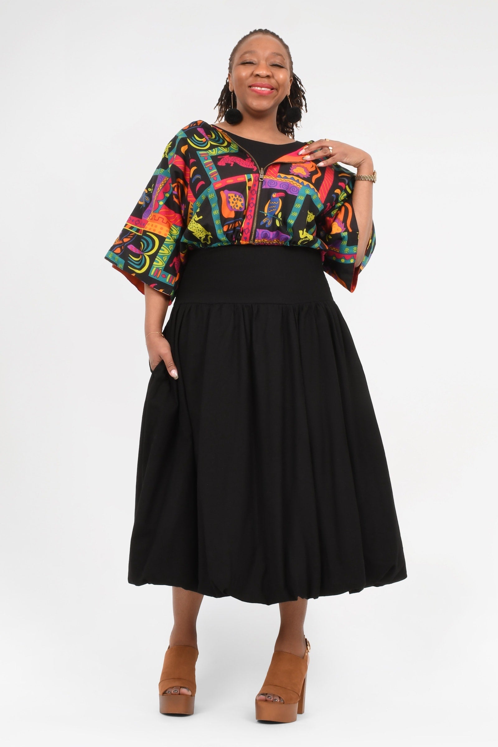 Styling Tip –  Make a statement with the Etti Top in Rio Blue — a bold, playful pop of colour perfect for turning heads. Finish with Pom Pom Earrings in Cobalt or Black for extra fun and Keshet vibes!
