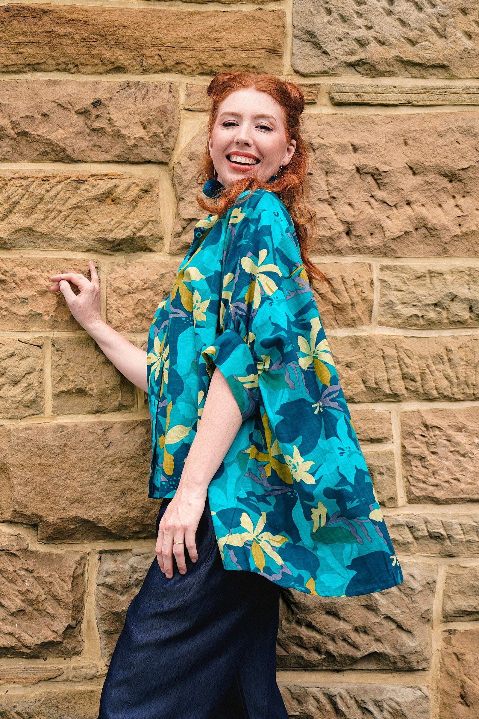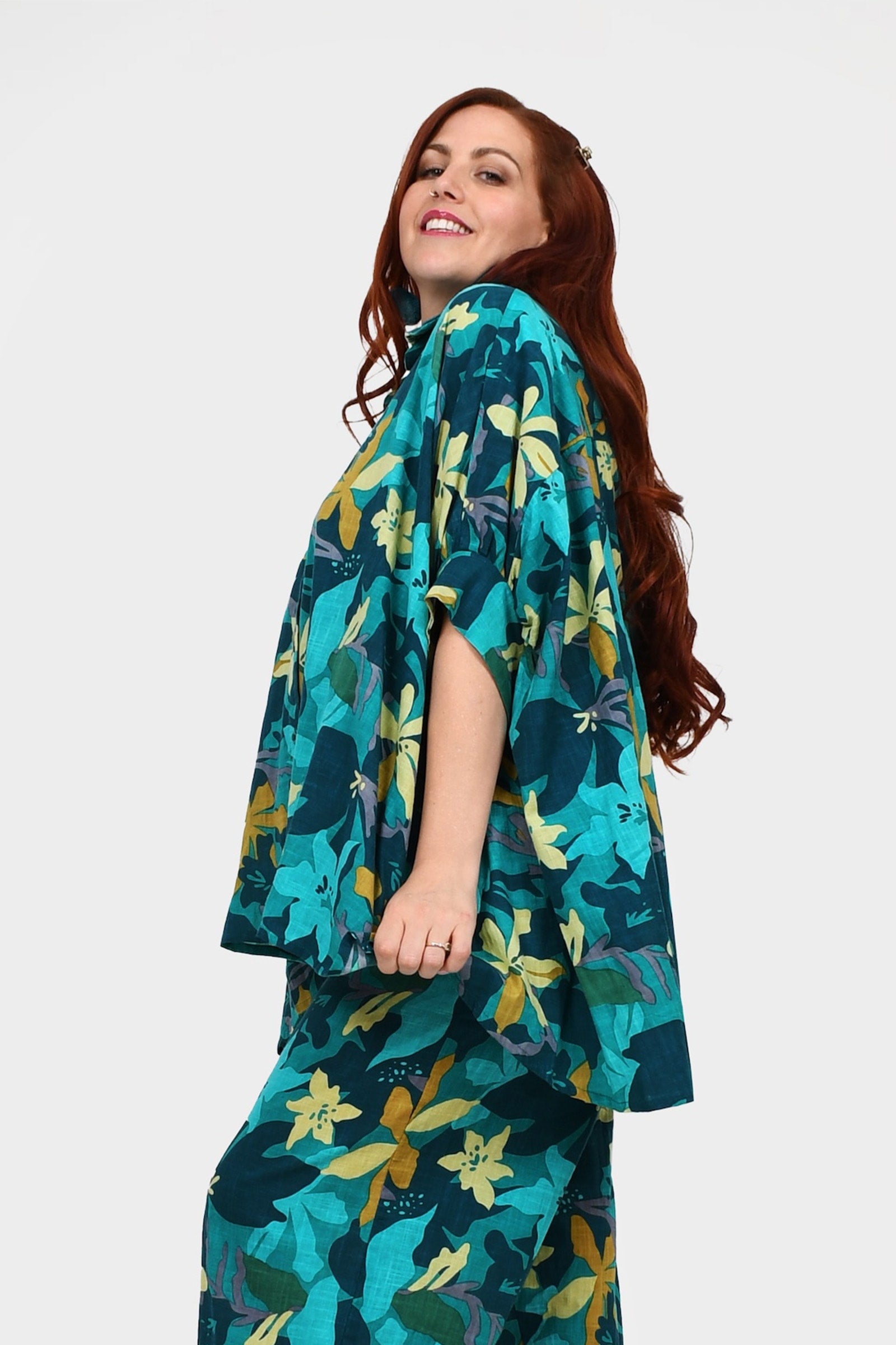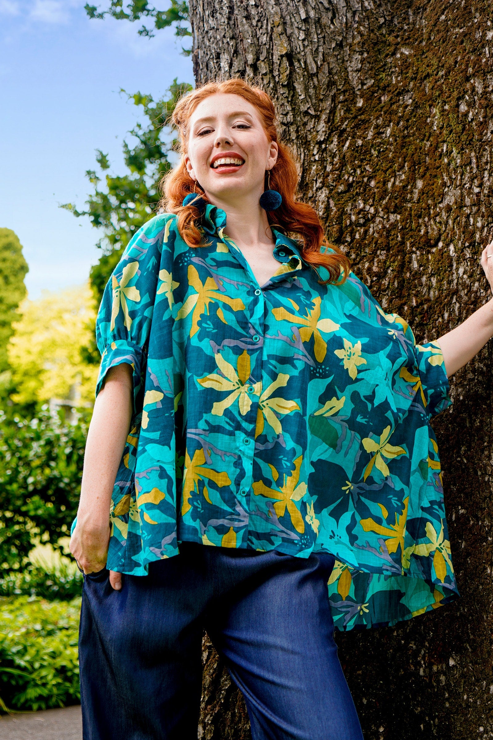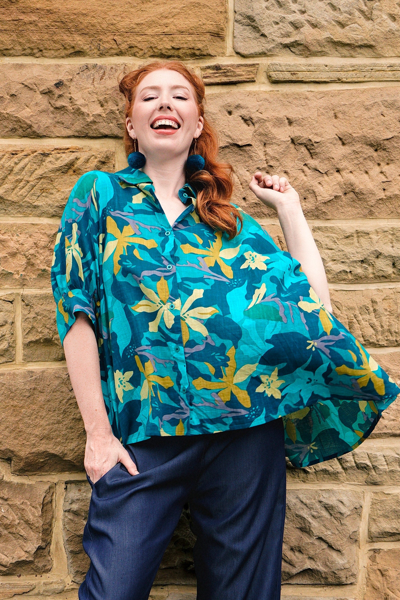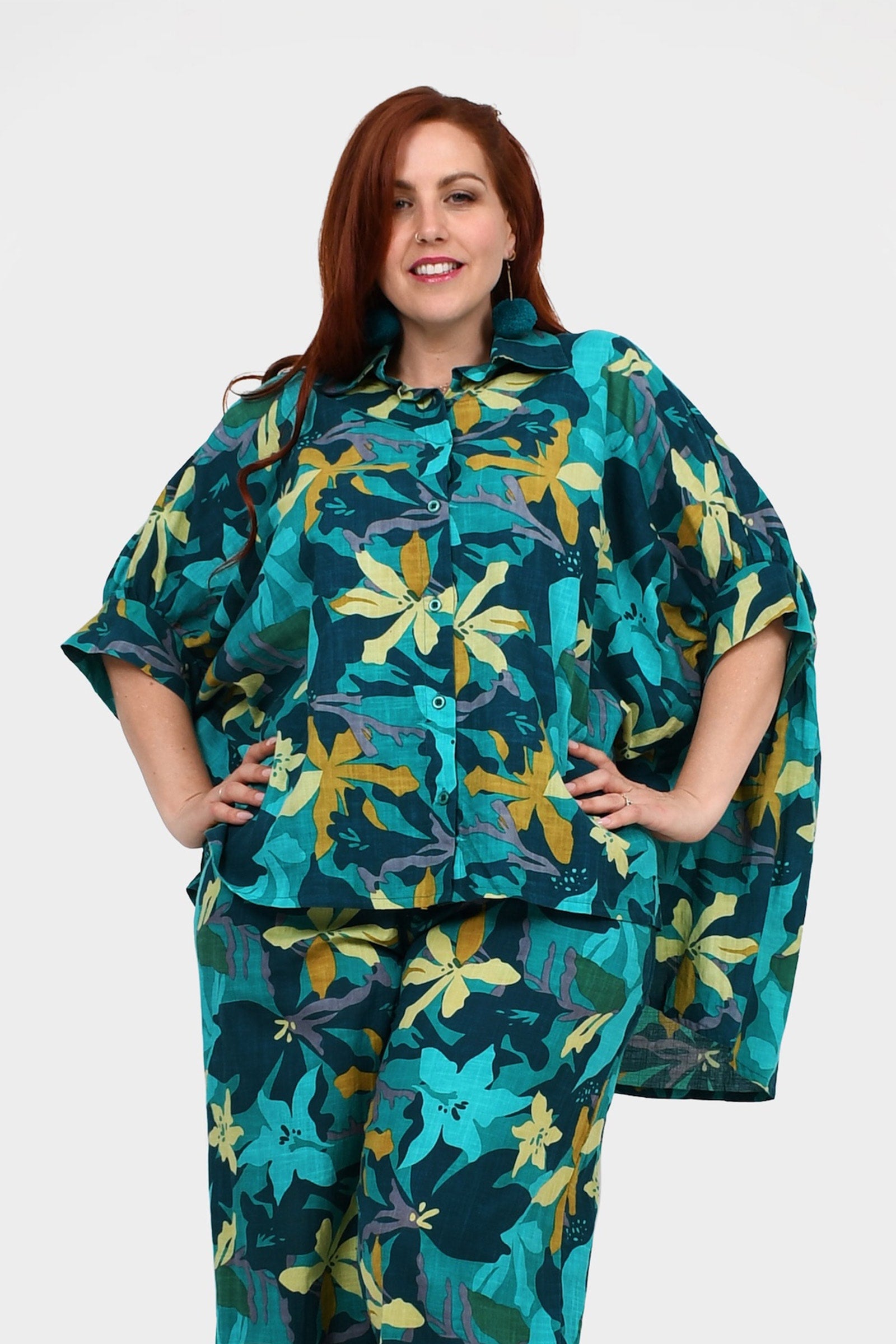 Styling Tip – Pair Suki Shirt with our statement Pom Pom Earrings in Teal and the Una Pants in Paradise Blue, finished with black sandals for a daytime-ready look. She’s perfect for casual brunches, workdays, or weekend strolls!