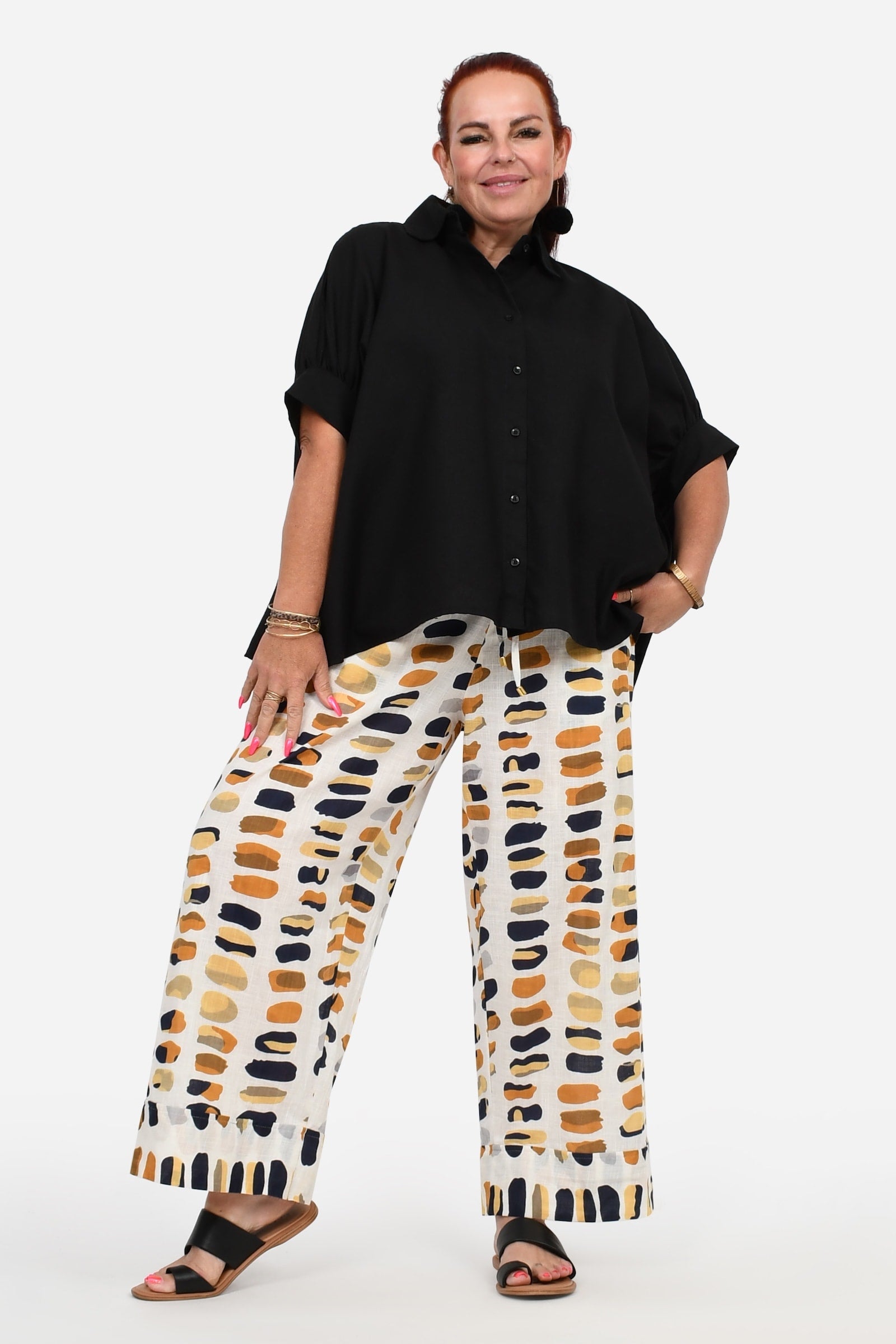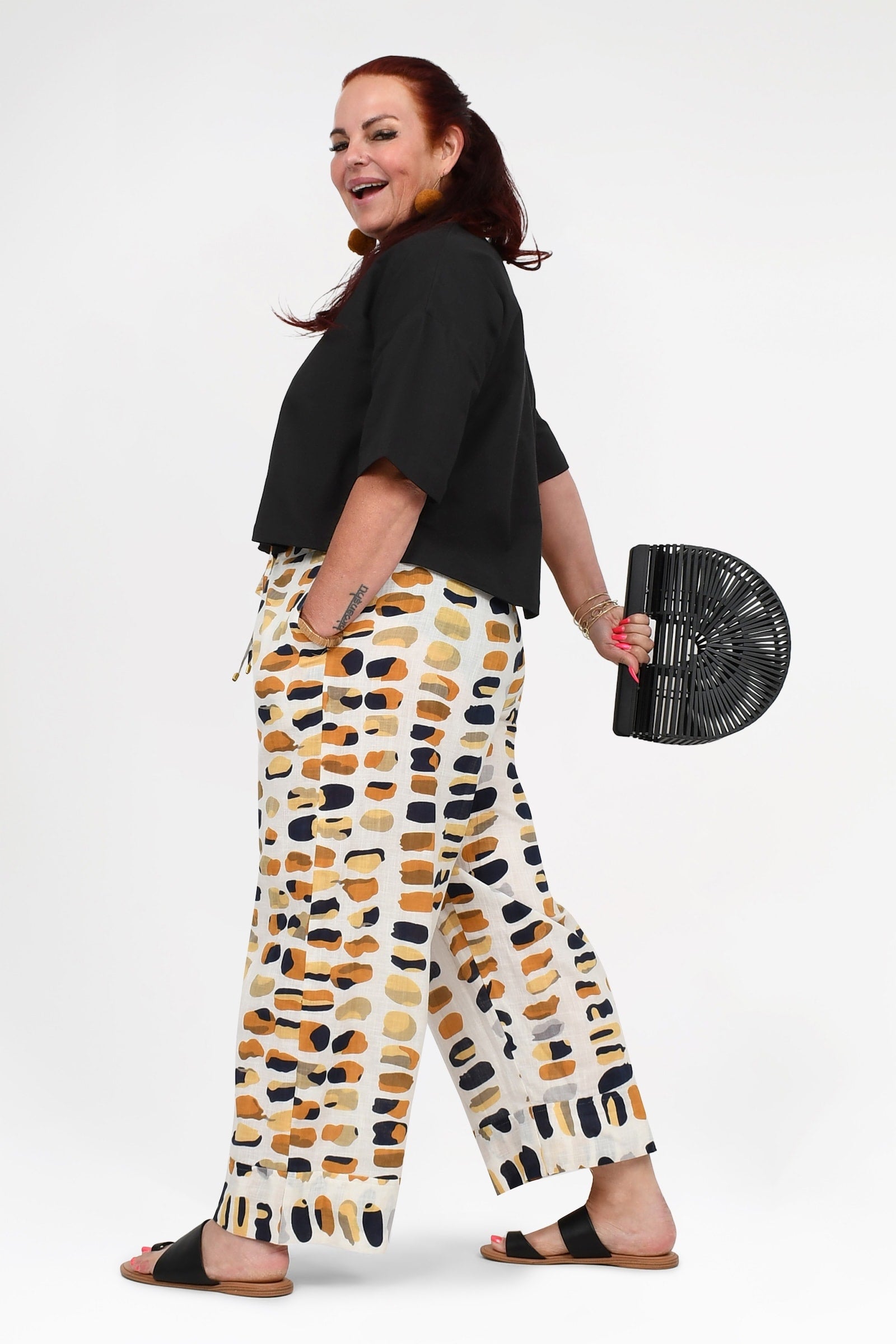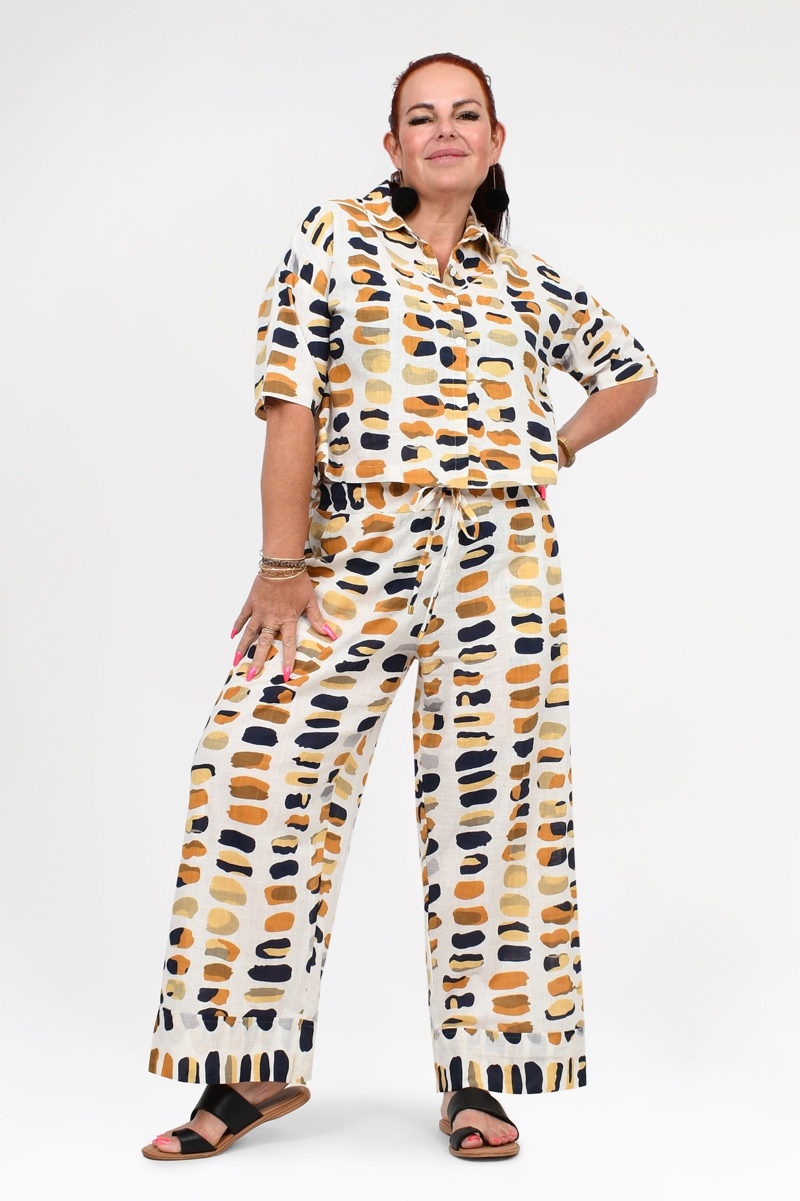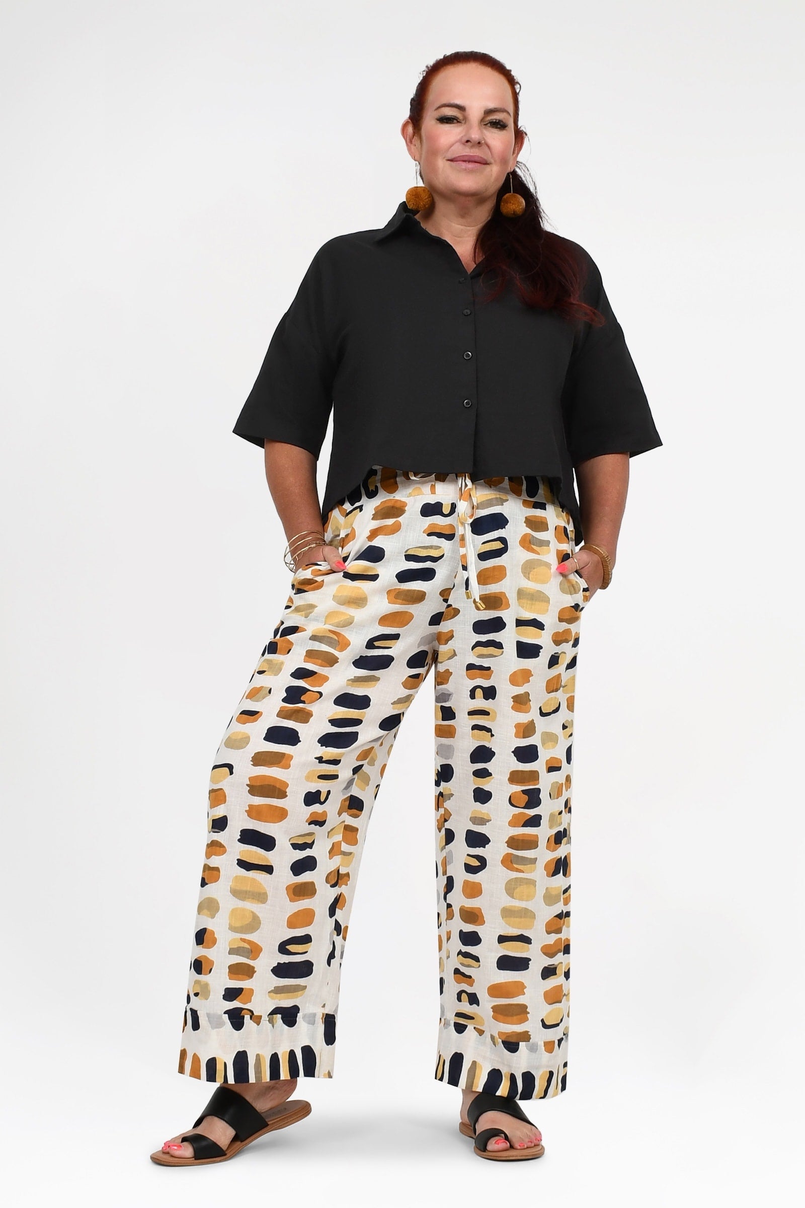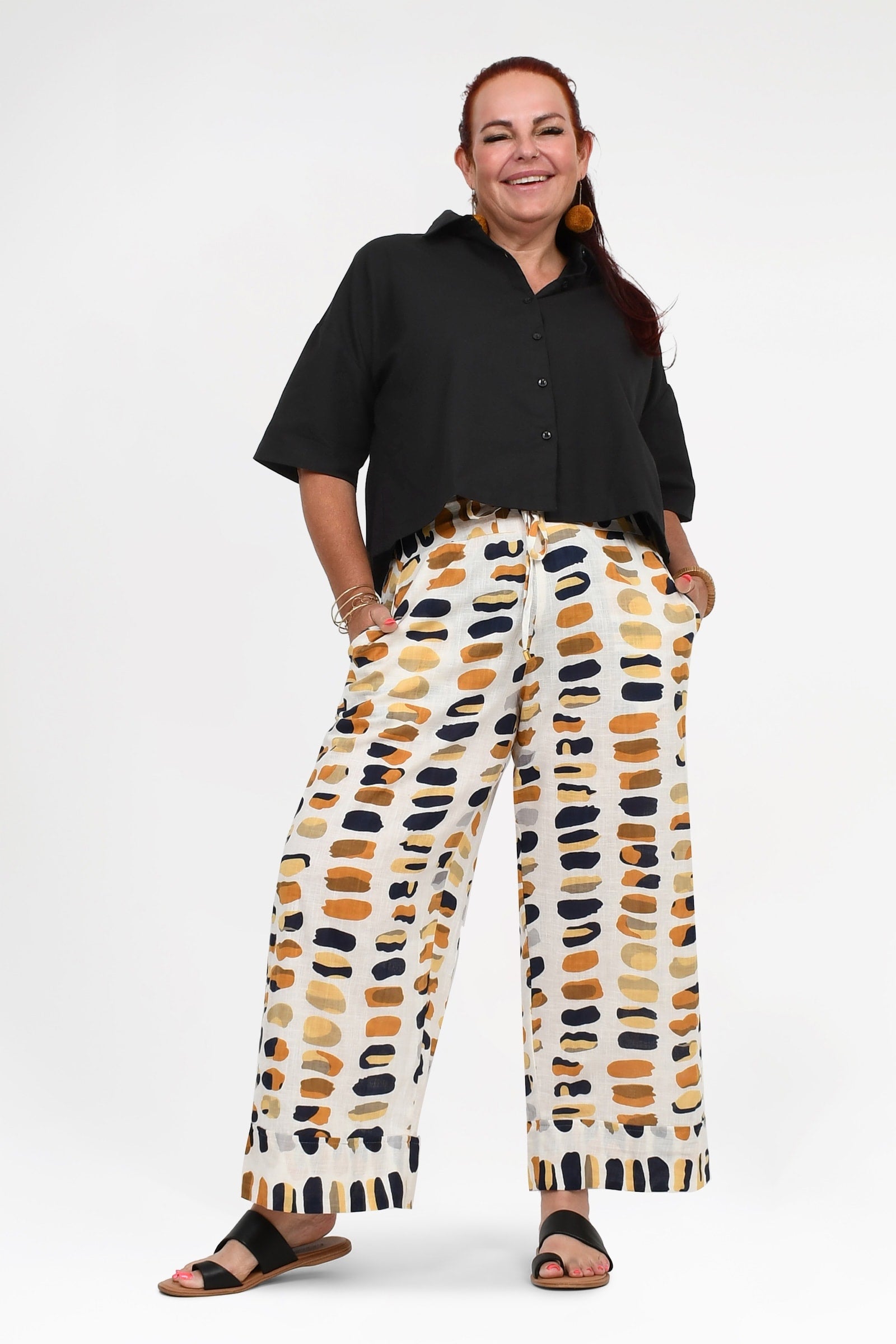 Styling Tip – Pair the Una Pants with the Willa Top in Pebbles for a fresh, effortless look. Add our statement Pom Pom Earrings in Honeycomb and beige sandals for daytime outings, or elevate the outfit with heels and a Denim Jacket for brunches, workdays, or casual dinners. Comfortable, chic, and totally effortless!