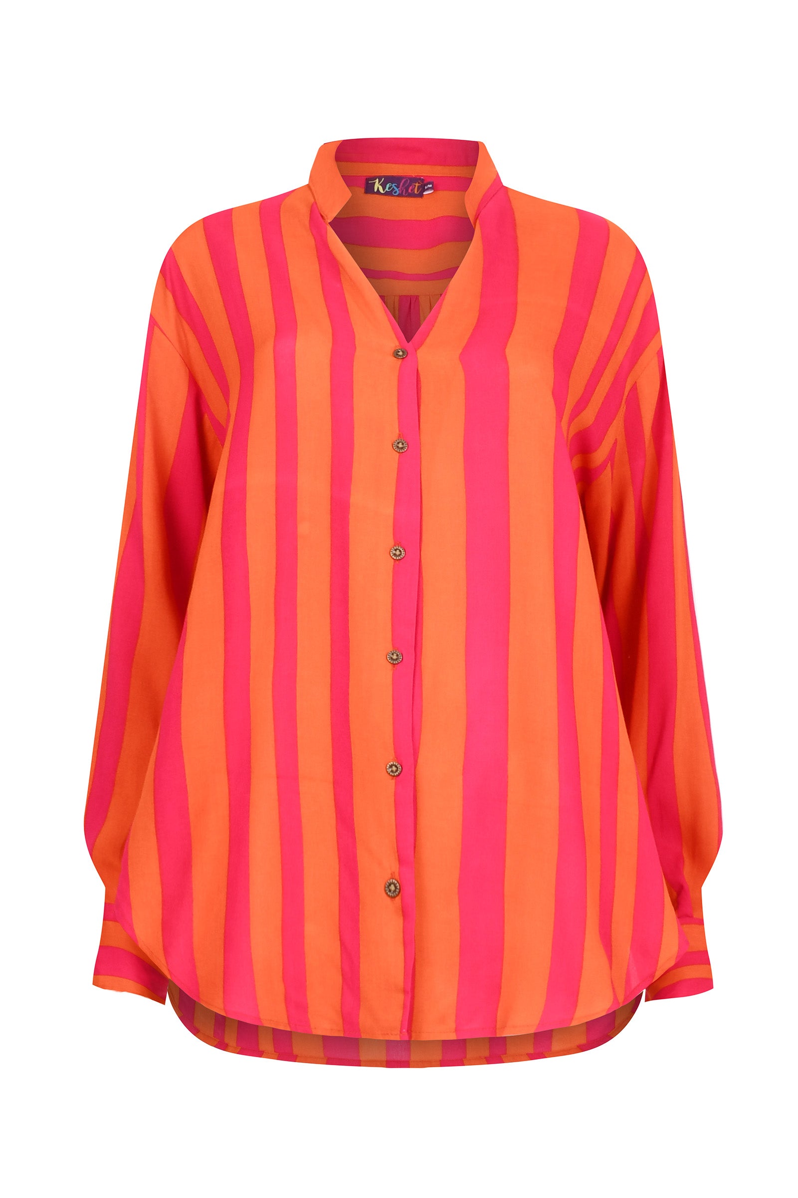 - Featuring a refined V-neck with a slim, slightly raised collar — a fresh twist on a classic shirt, elongating the neckline and adding subtle elegance to any outfit.