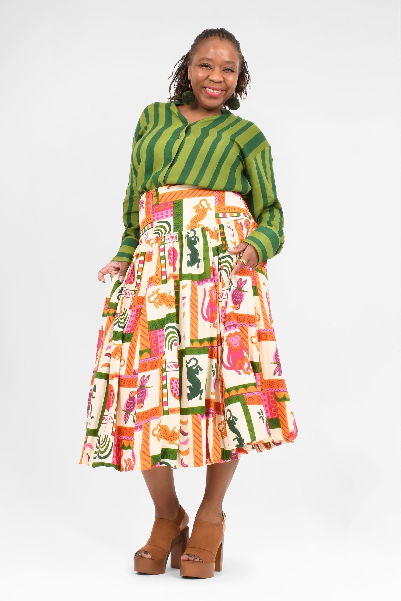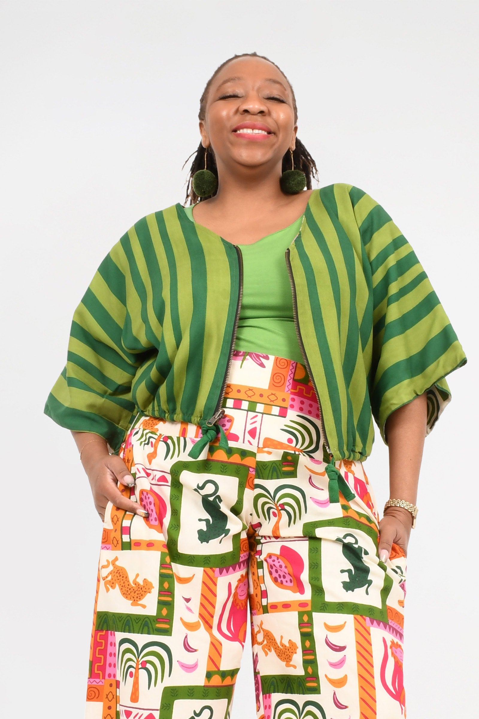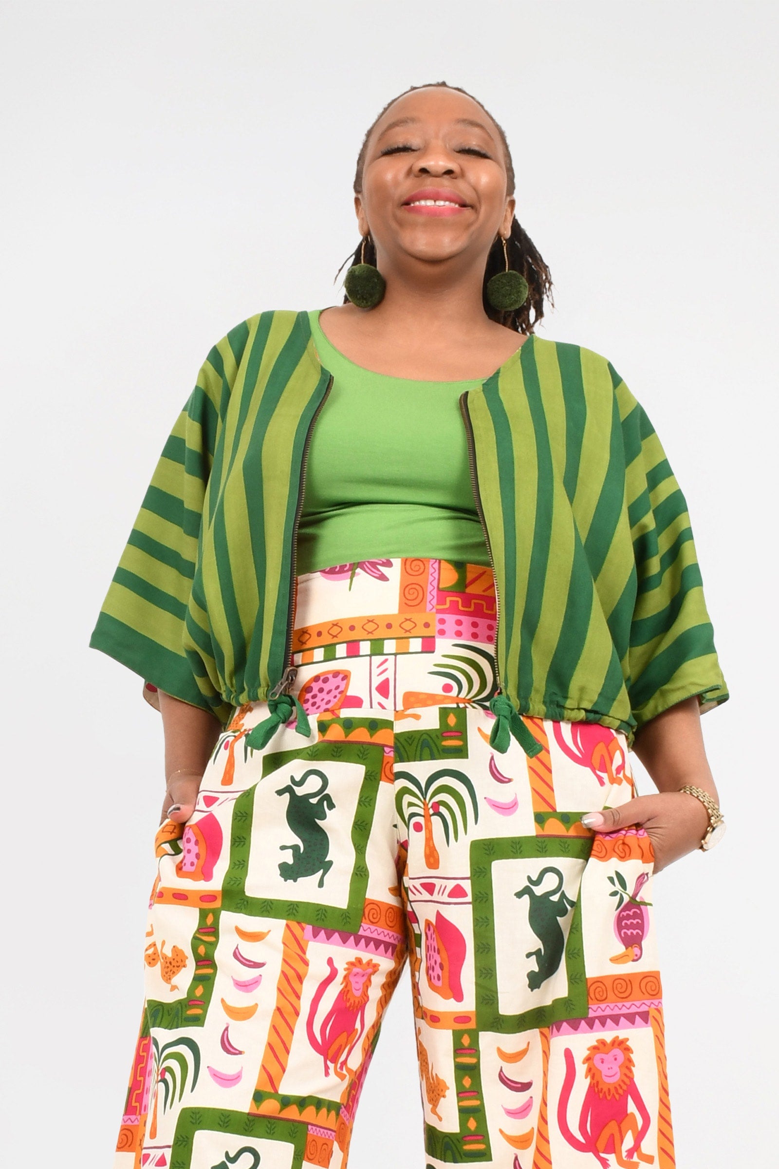 Animalia Pink/Green Cotton/Stripe Cypress Rayon