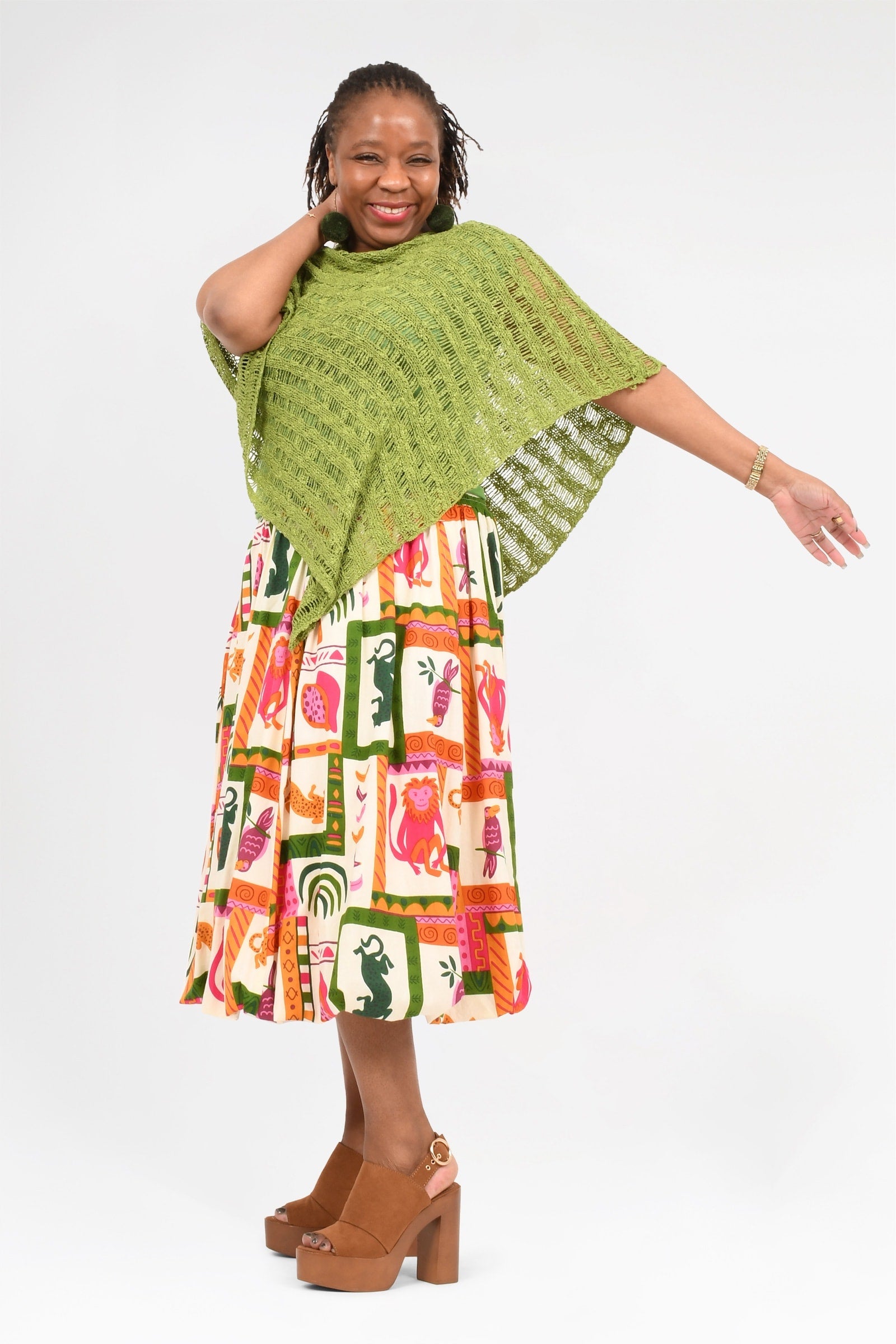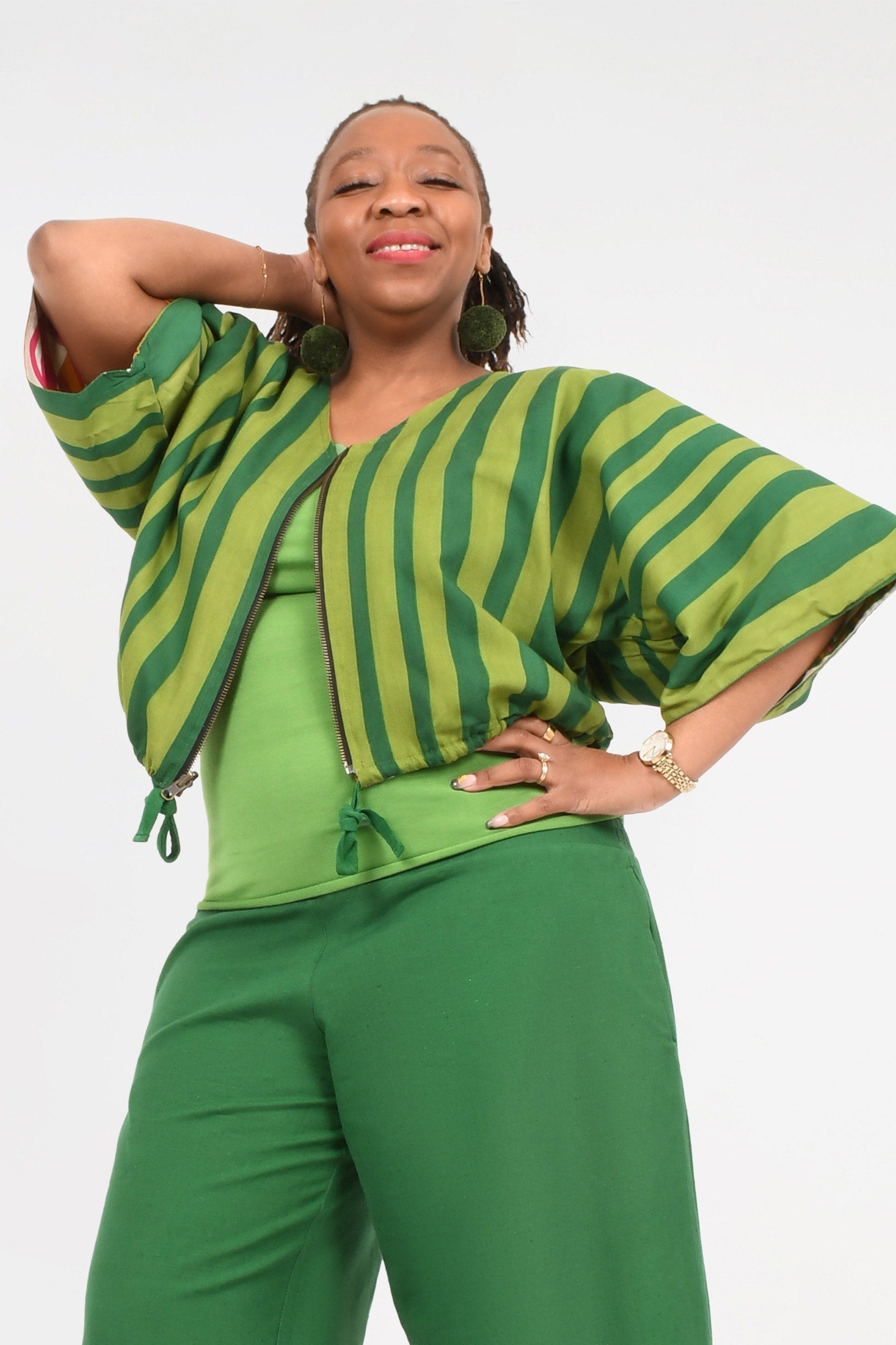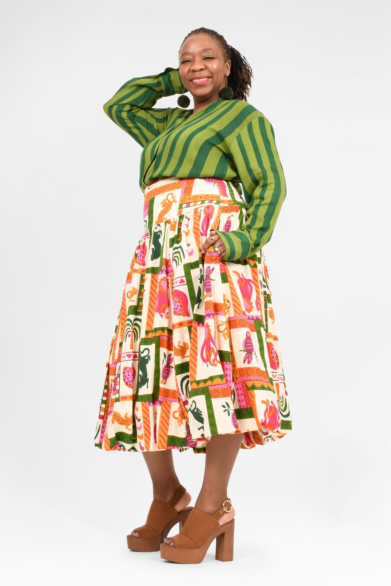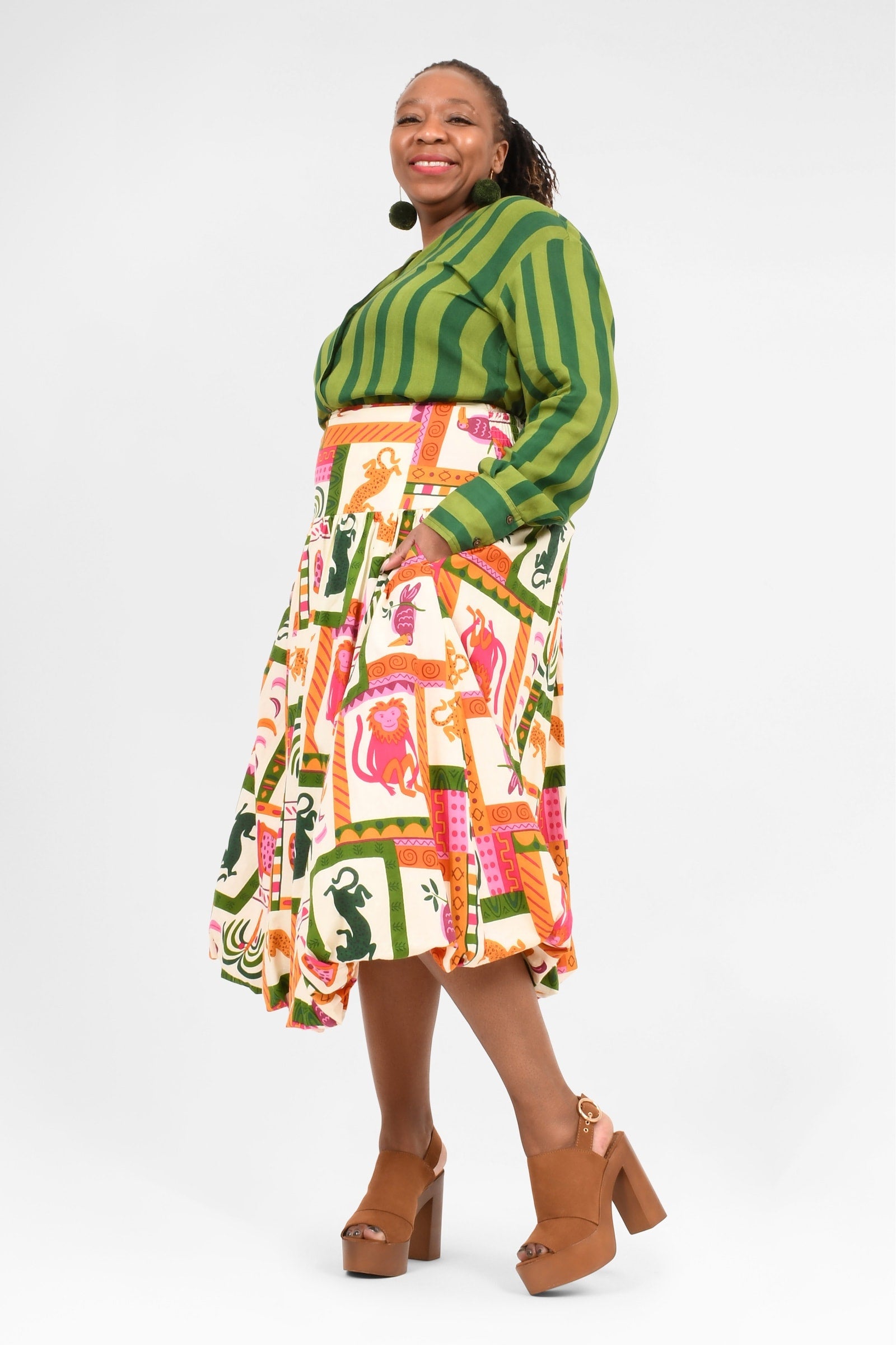 Animalia Pink/Green Cotton/Stripe Cypress Rayon