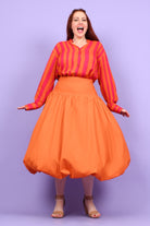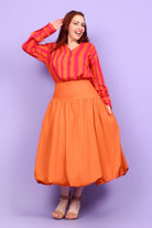 Styling Tip - Bring your spring wardrobe to life with the Nora Top in Stripe Marigold — bursting with playful Serendipity vibes! Finish with your Pom Pom Earrings in Fuchsia for a playful POP and step out ready to turn heads.