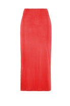 Made from stretchy 95% Rayon and 5% Elastane, this midi-length skirt is wonderfully lightweight and silky smooth to the touch. The straight-cut skims the figure whilst the split in the right-side seam aids movement and adds intrigue!