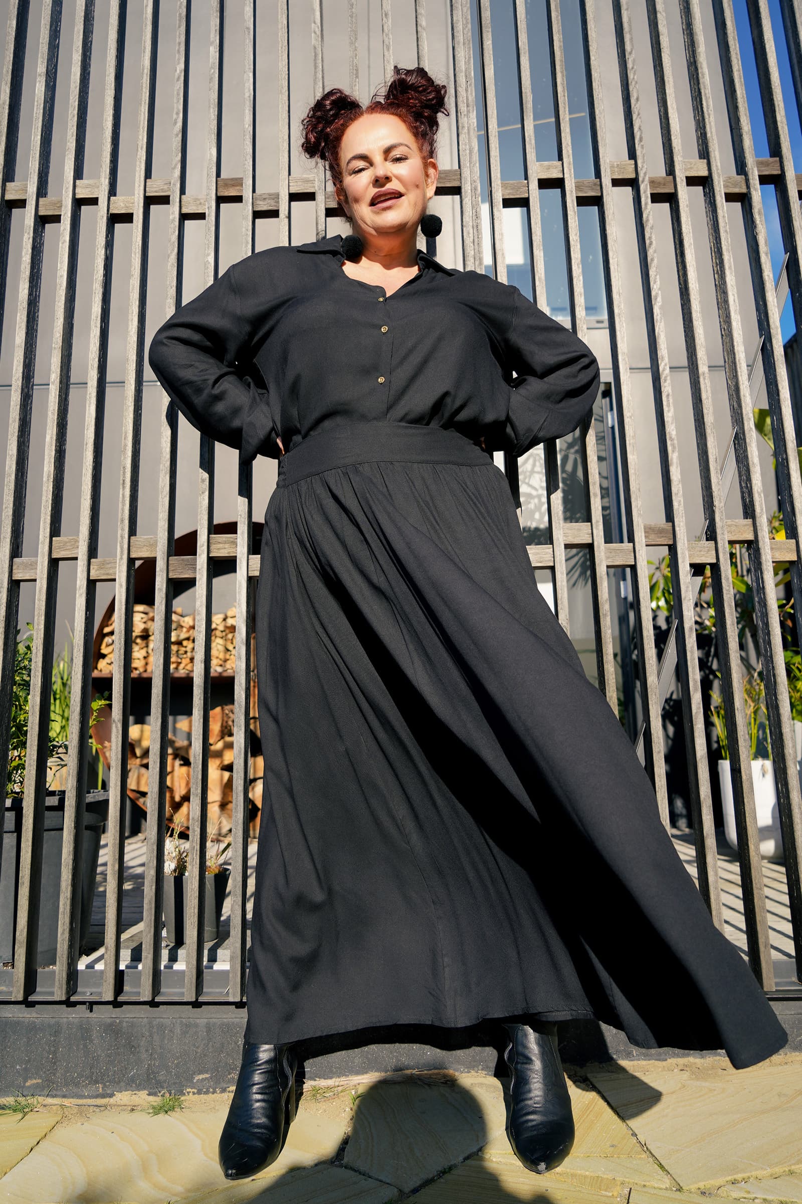 Sophia wears size S/M, is 175cm tall and is standard AU size 8.