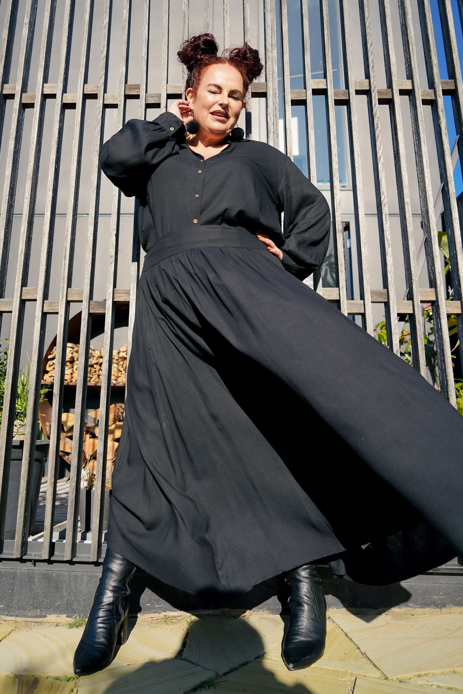 Melodie wears size L/XL, is 168cm tall and is standard AU size 16-18.
