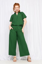 Styling Tip - Let Gemma shine with the Noa Top in Cypress. This cropped style is perfect for showing off that signature Keshet colour vibe.