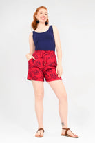 - These cute 100% Woven Rayon shorts feature a stylish tie waist, allowing you to customise your fit for maximum comfort.