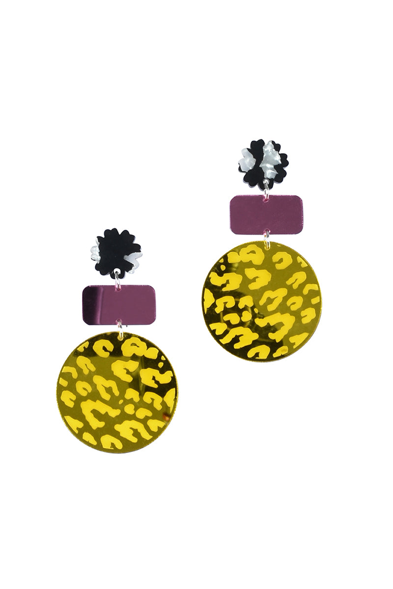 Leopard Circle Mirror Dangles - ONE-OF-A-KIND statement earrings!