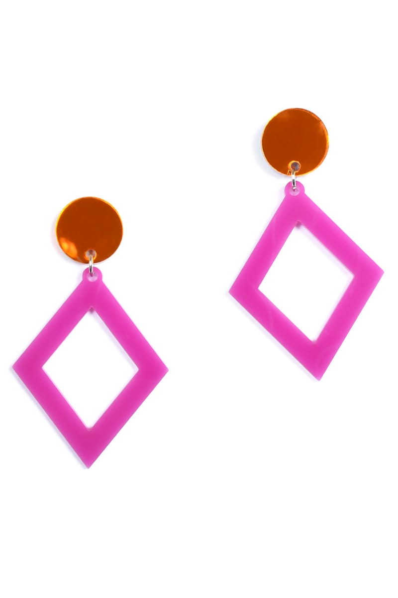 Dazzle in Orange Mirror Rhombus Dangles made with frosted matte and mirror acrylic!